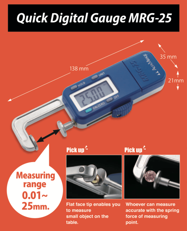 MRG-25 là thiết bị đo độ dày thuốc viên cầm tay chuyên dụng cho các phòng thí nghiệm, nghiên cứu dược phẩm. Cho phép đo nhanh độ dày, kích thước các chi tiết nhanh chóng với màn hình hiển thị số. Với thiết kế nhỏ gọn kiểu hiện số, thiết kế kiểu cầm tay dễ dàng đo tại xưởng sản xuất. Máy dễ sử dụng, đo nhanh, độ chính xác cao