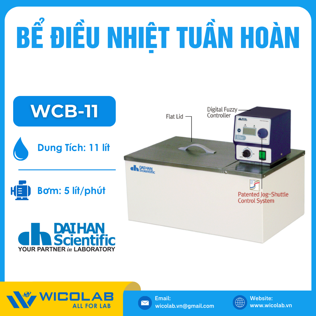 WCB-11 ⭐ Bể điều nhiệt tuần hoàn dung tích 11 lít với dải nhiệt độ RT +5℃~ 100℃ do hãng Daihan Hàn Quốc sản suất. Bể sử dụng bộ điều khiển kỹ thuật số Fuzzy Control cho phép điều khiển nhiệt độ và Jog-Shuttle có chức năng nền sáng. Sản phẩm được phân phối chính hãng bởi Wicolab. Bảo hành lên tới 12 tháng. Hỗ trợ giao hàng toàn quốc