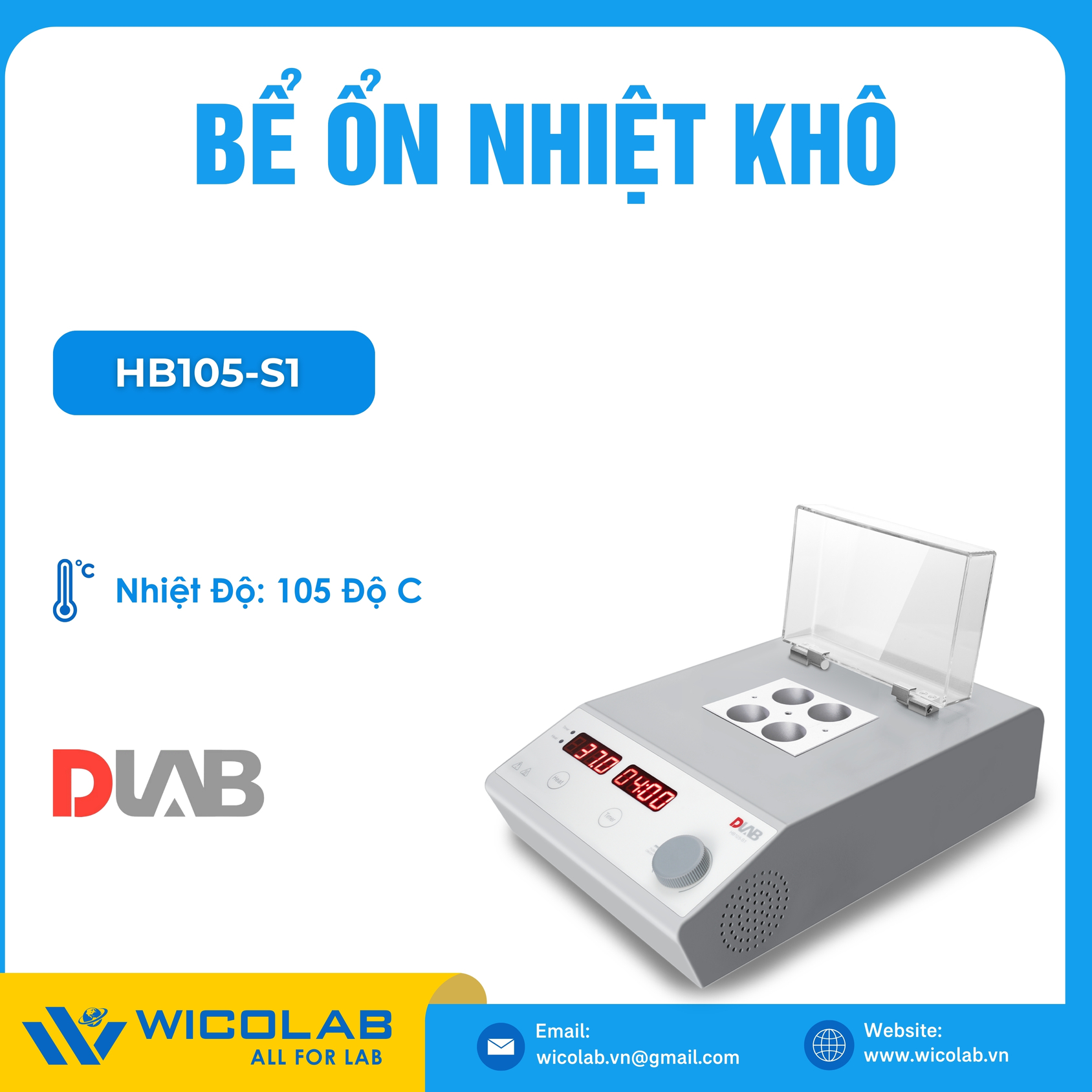 HB105-S1🌟Bể ổn nhiệt khô (hay còn gọi là Block gia nhiệt) do hãng Dlab - Trung Quốc thiết kế và chế tạo. Với bộ điều khiển kỹ thuật số cùng 2 màn hình LED riêng biệt cài đặt và hiển thị nhiệt độ và thời gian. Dải gia nhiệt rộng, tối đa lên tới 105 độ C. Thời gian cài đặt 1 phút đến 99 giờ 59 phút. Ngoài ra máy còn được trang bị 1 nắp đậy trong suốt hạn chế thất thoát nhiệt và an toàn khi sử dụng. Sản phẩm được nhập khẩu và phân phối chính hãng bởi WICOLAB