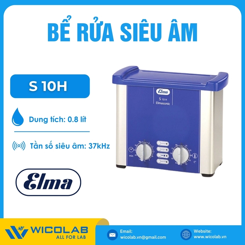S10H ⭐ Bể rửa siêu âm có gia nhiệt dung tích 0.8 lít, công suất siêu âm 30W. Bể được ứng dụng rộng rãi trong y tế, nha khoa, phòng thí nghiệm. Sản phẩm do hãng Elma- Đức sản xuất, được nhập khẩu và phân phối chính hãng bởi Wicolab. Bảo hành 12 tháng