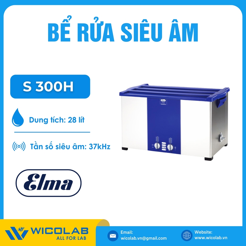 S300H ⭐ Bể rửa siêu âm có gia nhiệt dung tích 28 lít, công suất siêu âm 300W. Bể được ứng dụng rộng rãi trong y tế, nha khoa, phòng thí nghiệm. Sản phẩm do hãng Elma- Đức sản xuất, được nhập khẩu và phân phối chính hãng bởi Wicolab. Bảo hành 12 tháng