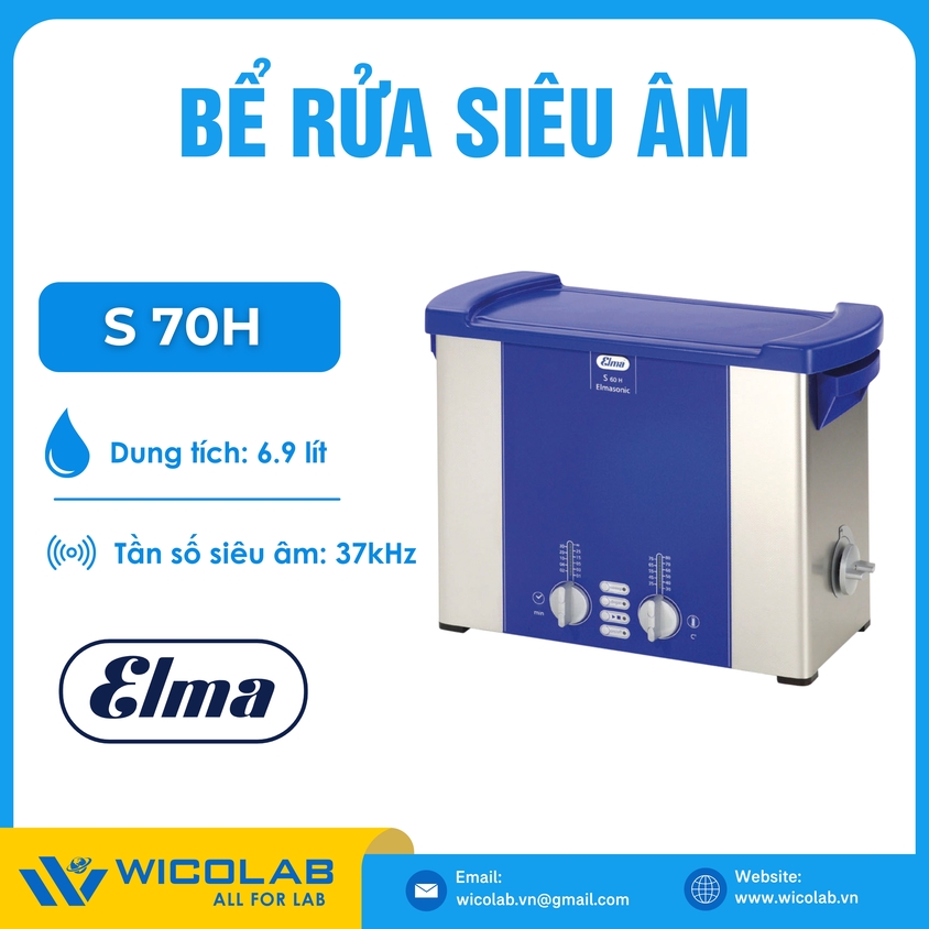 S70H ⭐ Bể rửa siêu âm có gia nhiệt dung tích 6.9 lít, công suất siêu âm 150W. Bể được ứng dụng rộng rãi trong y tế, nha khoa, phòng thí nghiệm. Sản phẩm do hãng Elma- Đức sản xuất, được nhập khẩu và phân phối chính hãng bởi Wicolab. Bảo hành 12 tháng