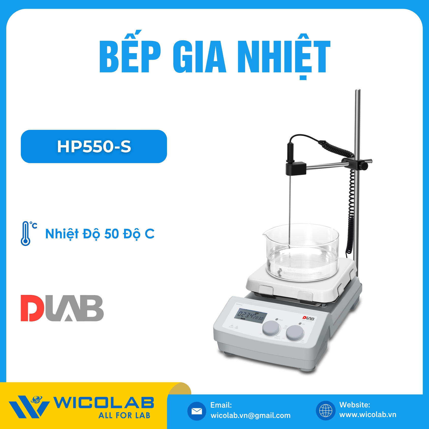 HP550-S 🌟Bếp gia nhiệt do hãng Dlab - Trung Quốc thiết kế và chế tạo. Với thiết kế nhỏ gọn, bề mặt gia nhiệt bằng Glass Ceramic chống chịu hoá chất và dễ dàng vệ sinh. Kích thước mặt gia nhiệt 184x184mm. Với bộ điều khiển PID màn hình LED với nhiệt độ tối đa lên tới 550 độ C. Ngoài ra máy còn được trang bị 1 cảm biến nhiệt độ PT1000 với độ chính xác ± 0.5 độ C để đo nhiệt độ trong dung dịch giúp kiểm soát tốt nhiệt độ thực tế. Nhập khẩu và phân phối chính hãng bởi WICOLAB