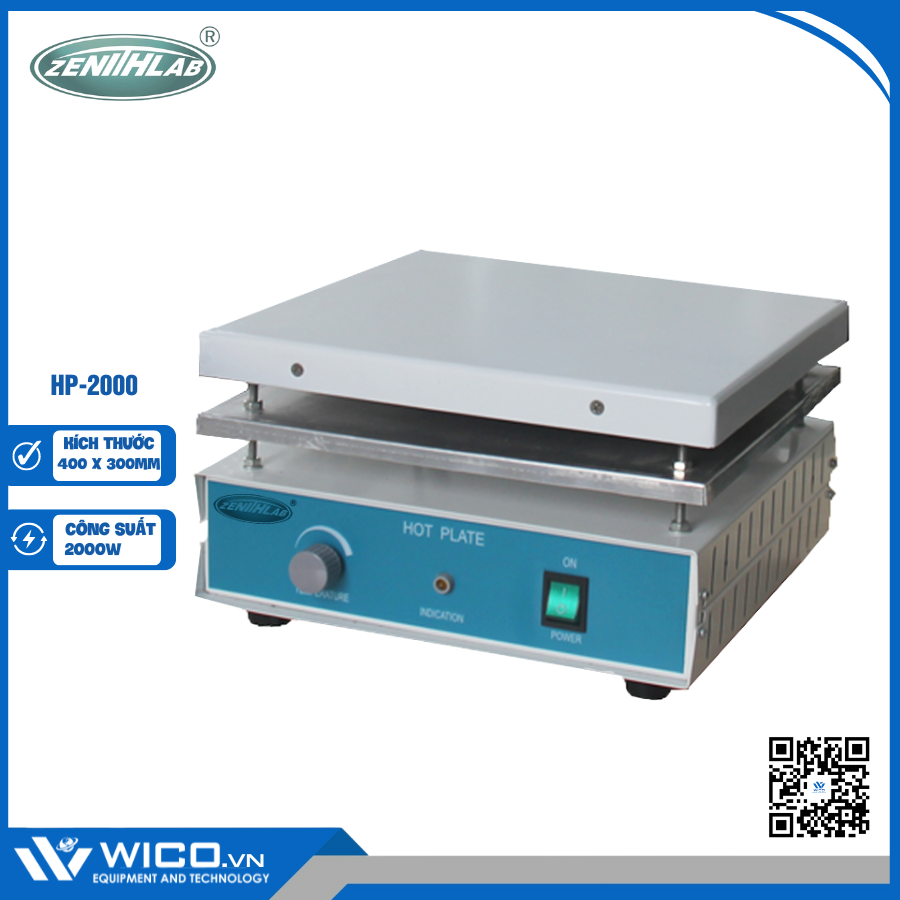 Bếp gia nhiệt - Hot plate HP-2000 🌟 Nhiệt độ tối đa 320 độ C. Mặt gia nhiệt 400x300mm. Bề mặt gia nhiệt bằng gốm sứ được sử dụng rộng rãi cho các mẫu gia nhiệt, làm khô và các thí nghiệm nhiệt độ khác. Hàng chính hãng Zenith Lab Trung Quốc. Được nhập khẩu và phân phối chính hãng bởi Wico Việt Nam. Bảo hành 12 tháng. Hỗ trợ giao hàng trên toàn quốc