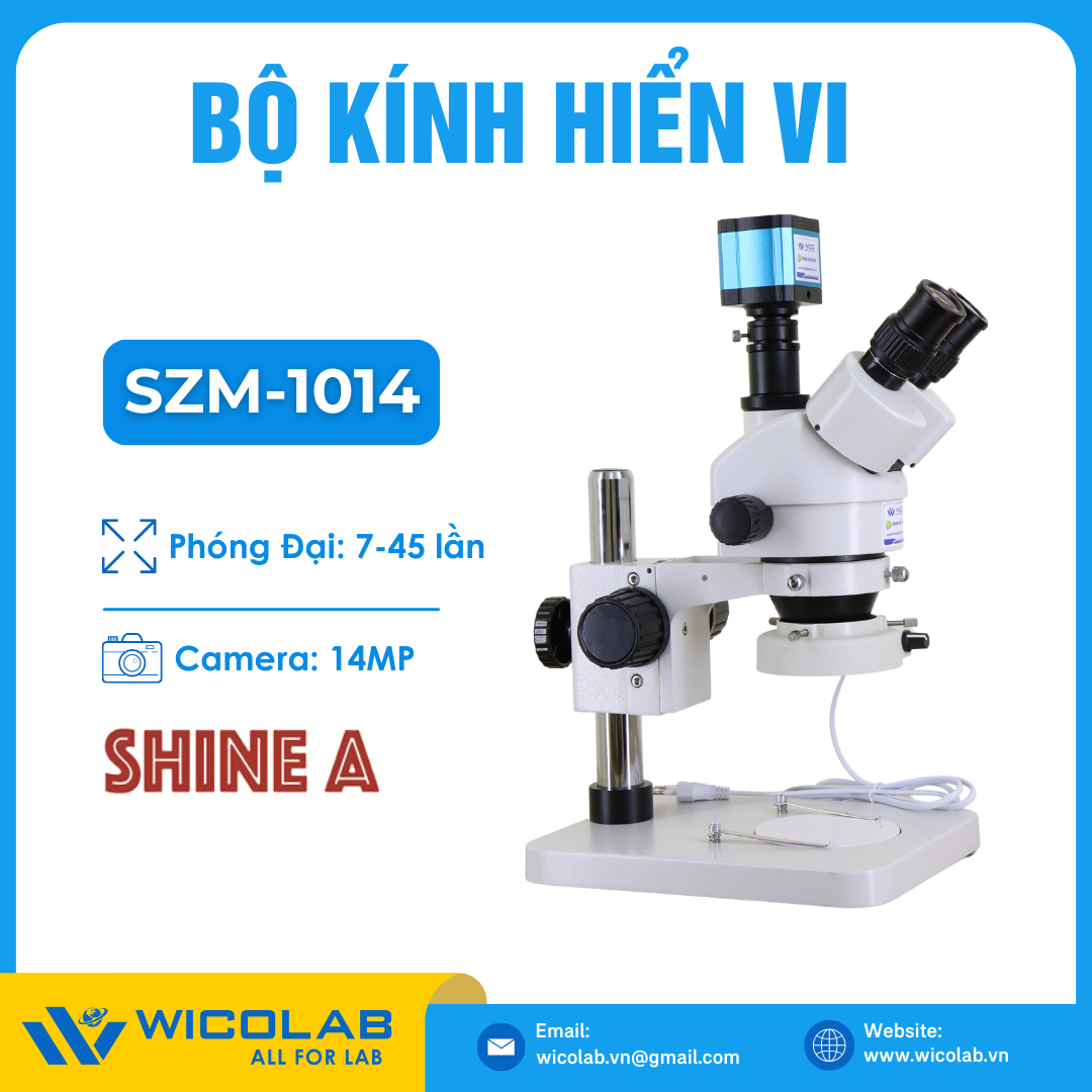SZM-1014 ⭐ Bộ Kính Hiển Vi Soi Nổi 3 mắt cao cấp SZM45T-B1 kèm Camera Chuyên Dụng 14MP kết nối qua cổng HDMI CCD-14MP do hãng Shine A - Trung Quốc sản xuất. Kết nới màn hình / PC vô cùng dễ dàng qua cổng HDMI/ USB 2.0. Sản phẩm được nhập khẩu và phân phối chính hãng bởi WICOLAB.