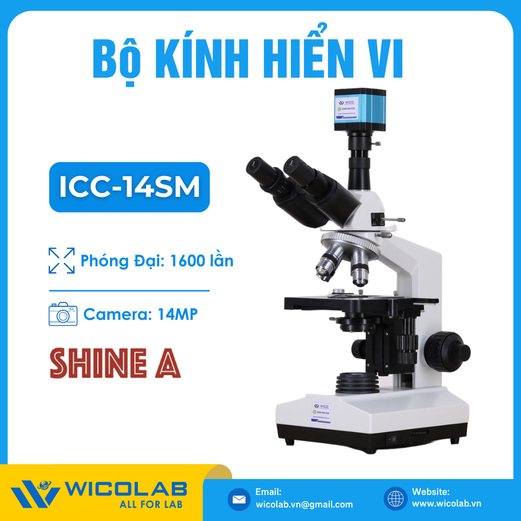 ICC-14SM là Bộ Kính Hiển Vi Sinh Học 3 mắt cao cấp XSZ-107SM kèm Camera Chuyên Dụng 14MP kết nối qua cổng HDMI CCD-14MP do hãng Shine A sản xuất. Sản phẩm được nhập khẩu và phân phối chính hãng bởi WICOLAB.