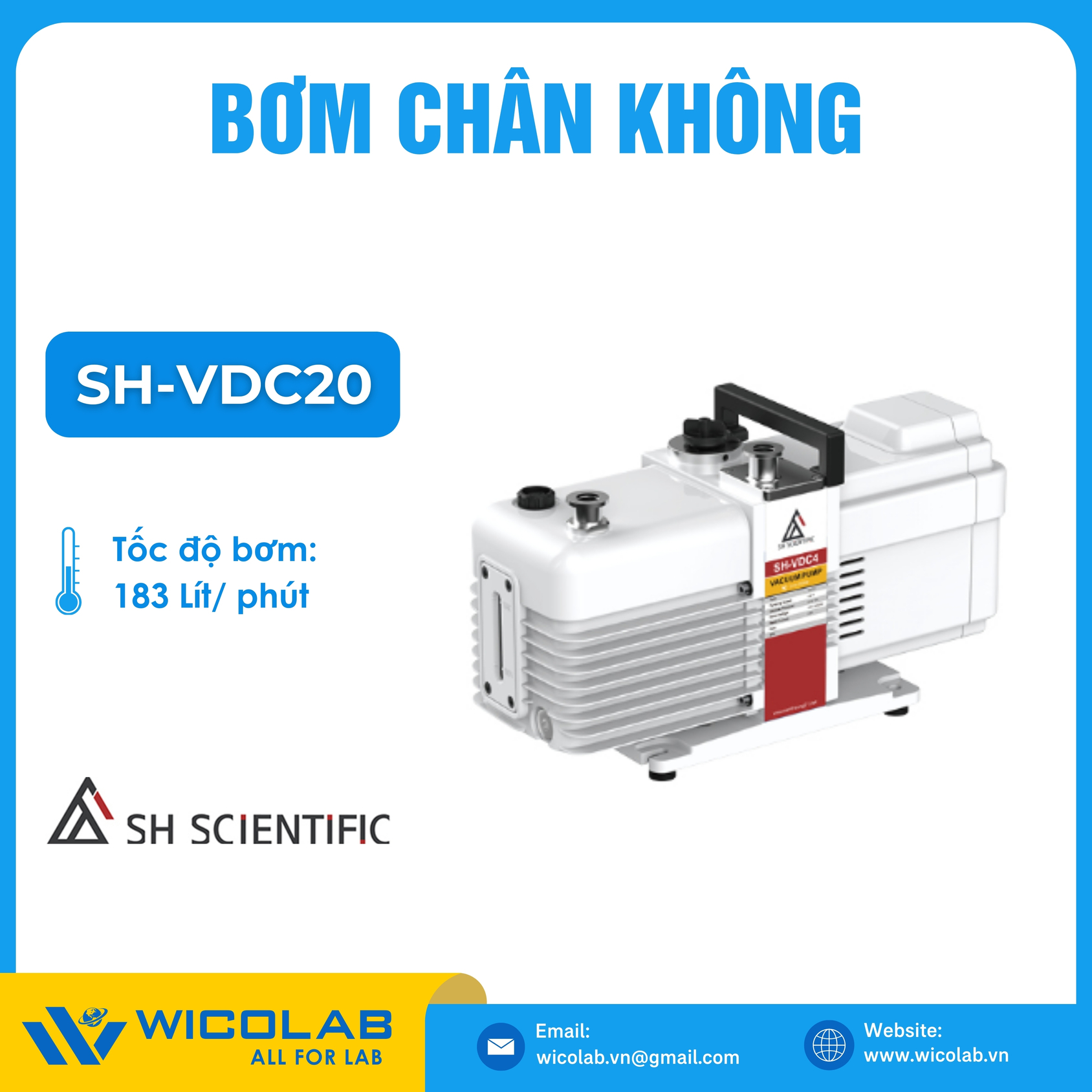 SH-VDC20 🌟 Bơm chân không vòng dầu, tốc độ bơm 183 lít/phút, dung tích dầu 0.6 ~ 1 lít. Cấu trúc xi lanh và hệ thống tuần hoàn dầu cải tiến giúp bơm hoạt động ổn định. Sản phẩm do hãng SH Scientific Hàn Quốc thiết kế và chế tạo, được nhập khẩu và phân phối chính hãng bởi WICOLAB. Bảo hành 12 tháng. Hỗ trợ giao hàng toàn quốc