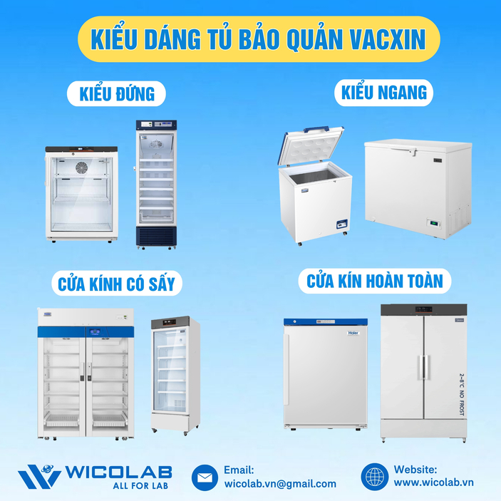 Tủ bảo quản vắc xin hiện nay có hai kiểu dáng phổ biến là tủ đứng và tủ ngang.