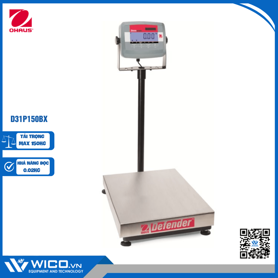 D31P150BX ✨ Khối lượng tối đa 150kg | Bàn cân 500 x 600mm là cân bàn đa năng đáp ứng các yêu cầu công nghiệp cơ bản cho các ứng dụng khô do hãng Ohaus – Mỹ thiết kế và chế tạo. Được nhập khẩu và phân phối chính hãng bởi wico.vn. Bảo hành 12 tháng. Hỗ trợ giao hàng trên toàn quốc