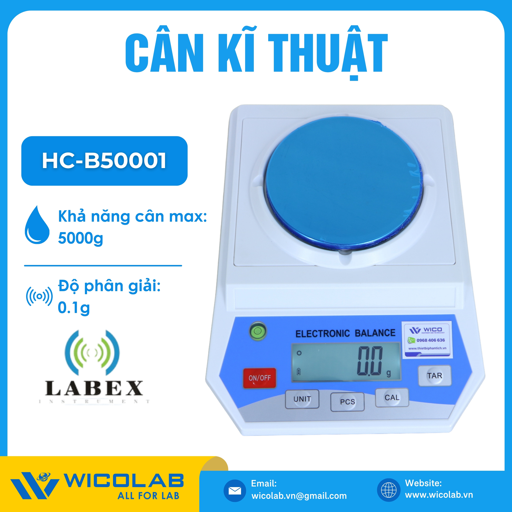HC-B50001 ⭐ Cân kỹ thuật 1 số lẻ màn hình LCD với khả năng cân tối đa 5kg và độ phân giải 0.1g. Sản phẩm do hãng Labex Anh thiết kế và chế tạo, được nhập khẩu và phân phối chính hãng bởi WICOLAB. Bảo hành 12 tháng
