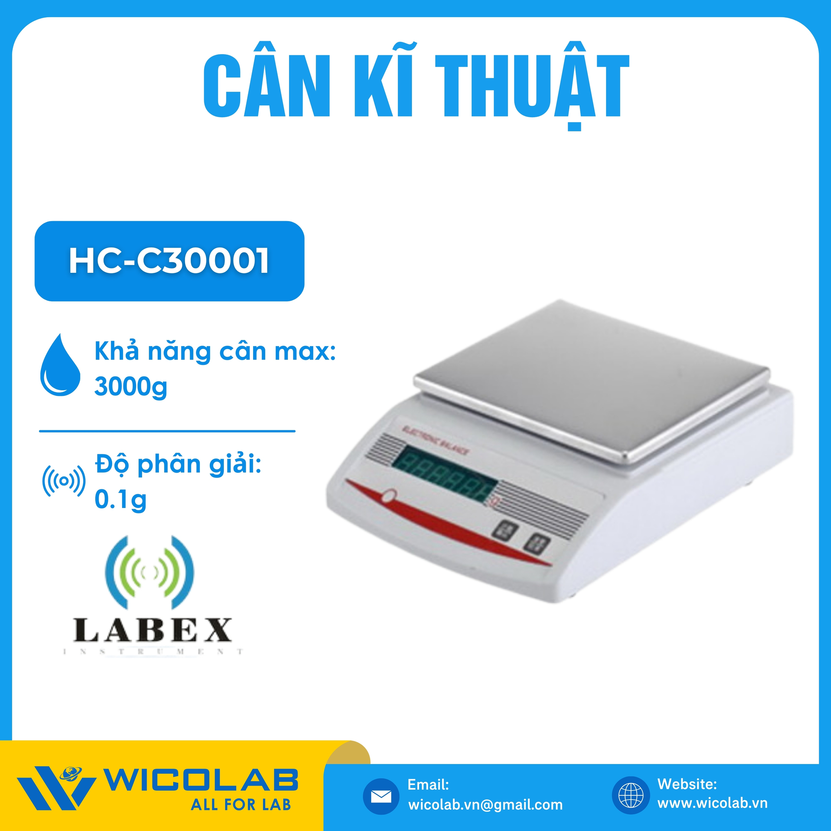 HC-C30001 ⭐ Cân kỹ thuật 1 số lẻ màn hình LCD với khả năng cân tối đa 3kg và độ phân giải 0.1g. Sản phẩm do hãng Labex Anh thiết kế và chế tạo, được nhập khẩu và phân phối chính hãng bởi WICOLAB. Bảo hành 12 tháng
