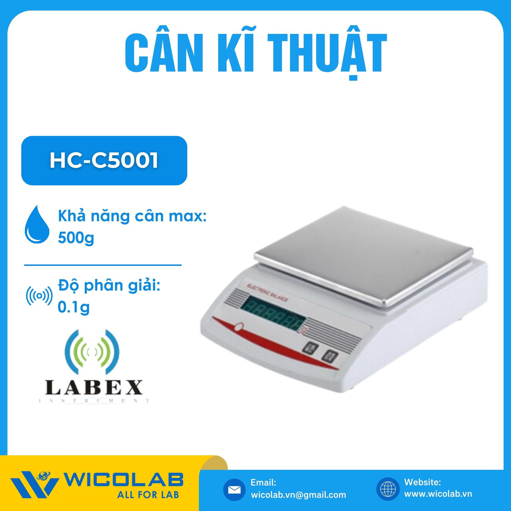 HC-C5001 ⭐ Cân kỹ thuật 1 số lẻ màn hình LED với khả năng cân tối đa 500g và độ phân giải 0.1g. Sản phẩm do hãng Labex Anh thiết kế và chế tạo, được nhập khẩu và phân phối chính hãng bởi WICOLAB. Bảo hành 12 tháng