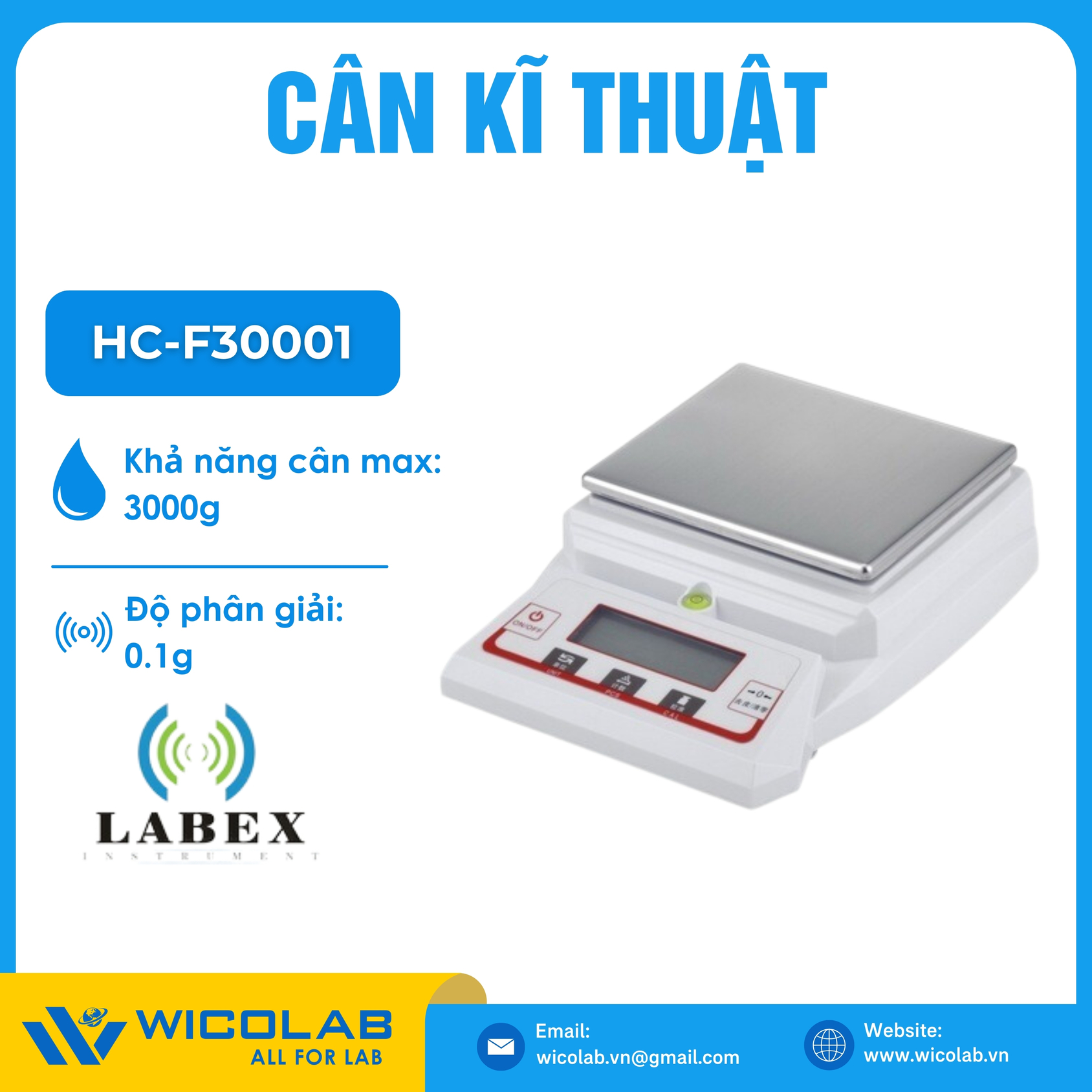 HC-F30001 ⭐ Cân kỹ thuật 1 số lẻ màn hình LCD với khả năng cân tối đa 3kg và độ phân giải 0.1g. Sản phẩm do hãng Labex Anh thiết kế và chế tạo, được nhập khẩu và phân phối chính hãng bởi WICOLAB. Bảo hành 12 tháng