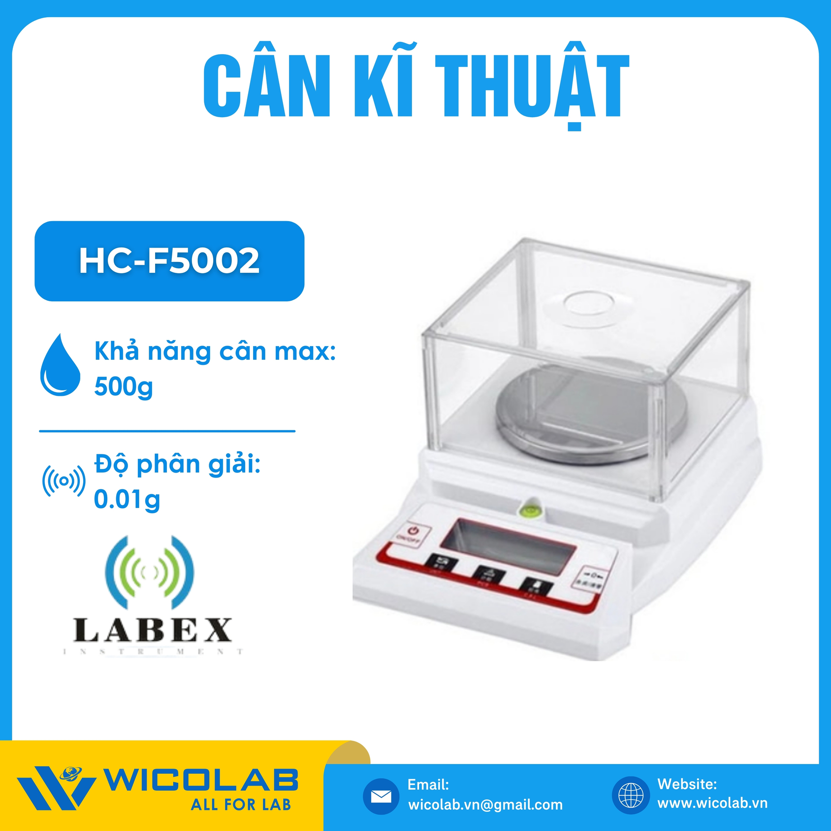 HC-F5002 ⭐ Cân kỹ thuật 2 số lẻ với khả năng cân tối đa 500g, độ phân giải 0.01 cùng màn hình LCD. Sản phẩm do hãng Labex Anh thiết kế và chế tạo, được nhập khẩu và phân phối chính hãng bởi WICOLAB. Bảo hành 12 tháng