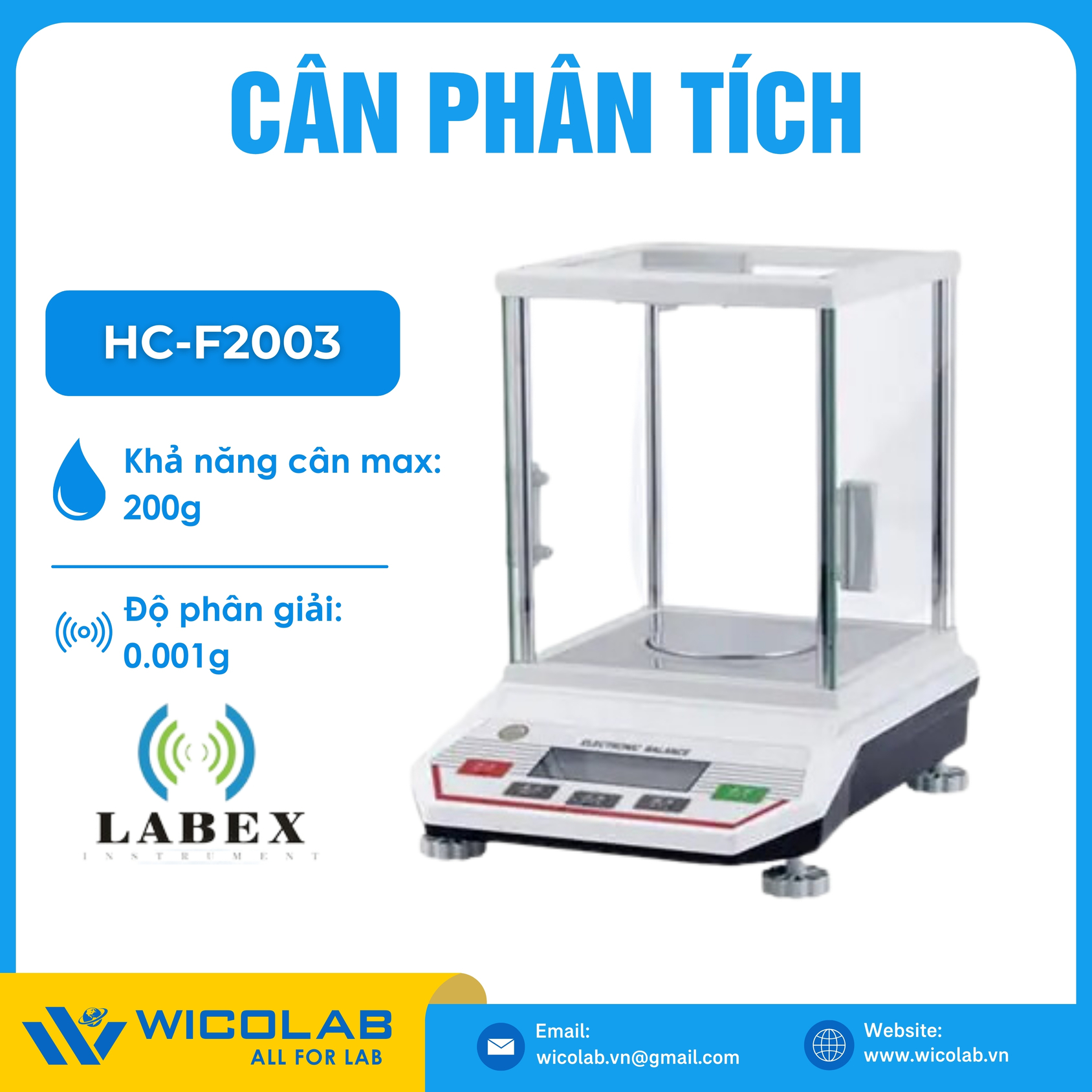 HC-F2003 ⭐ Cân phân tích 3 số lẻ với khả năng cân tối đa 200g và độ phân giải 0.001g cùng màn hình hiển thị LCD. Sản phẩm do hãng Labex Anh thiết kế và chế tạo, được nhập khẩu và phân phối chính hãng bởi WICOLAB. Bảo hành 12 tháng