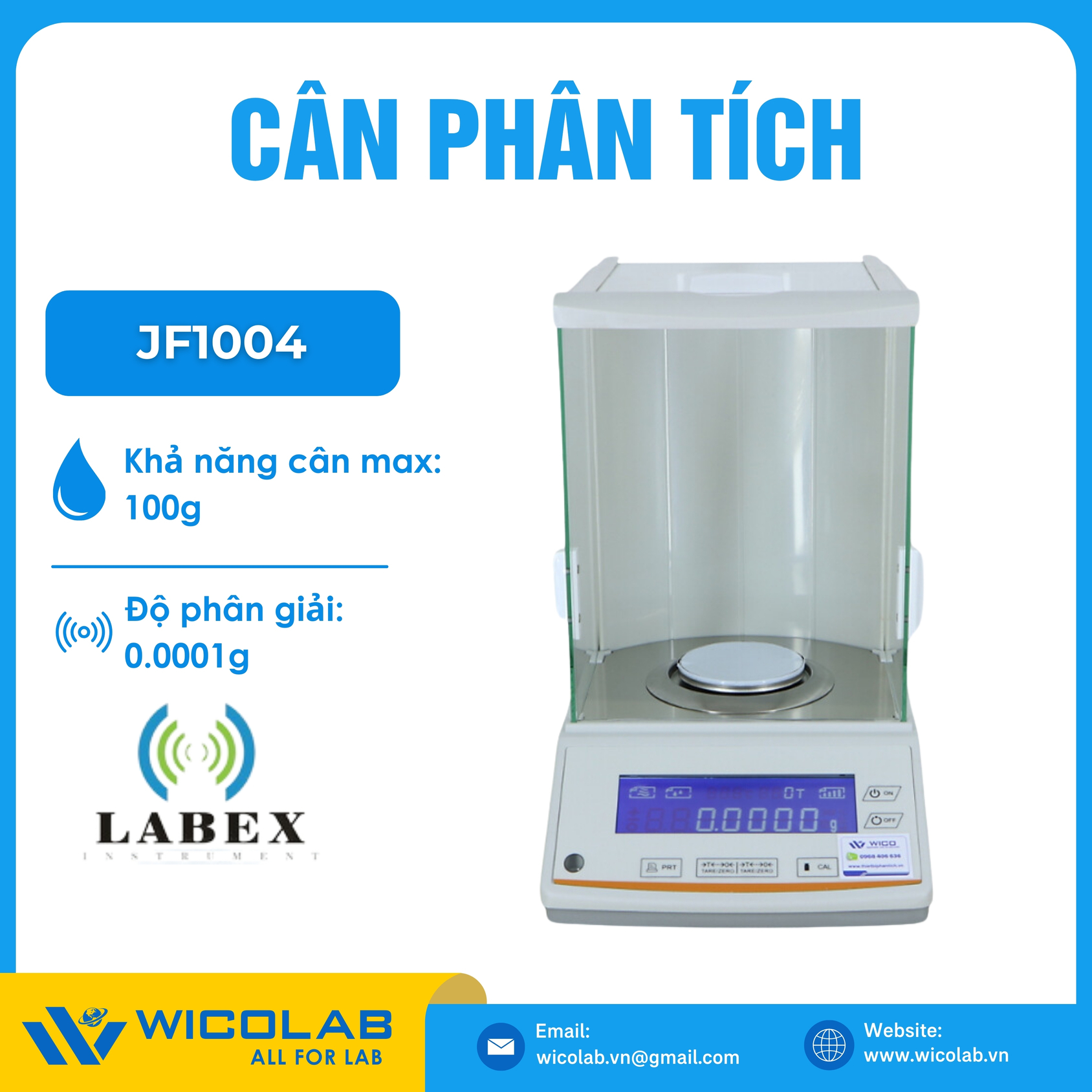 JF1004 ⭐ Cân phân tích 4 số lẻ màn hình LCD với khả năng cân tối đa 100g và độ phân giải 0.0001g. Sản phẩm do hãng Labex Anh thiết kế và chế tạo, được nhập khẩu và phân phối chính hãng bởi WICOLAB. Bảo hành 12 tháng