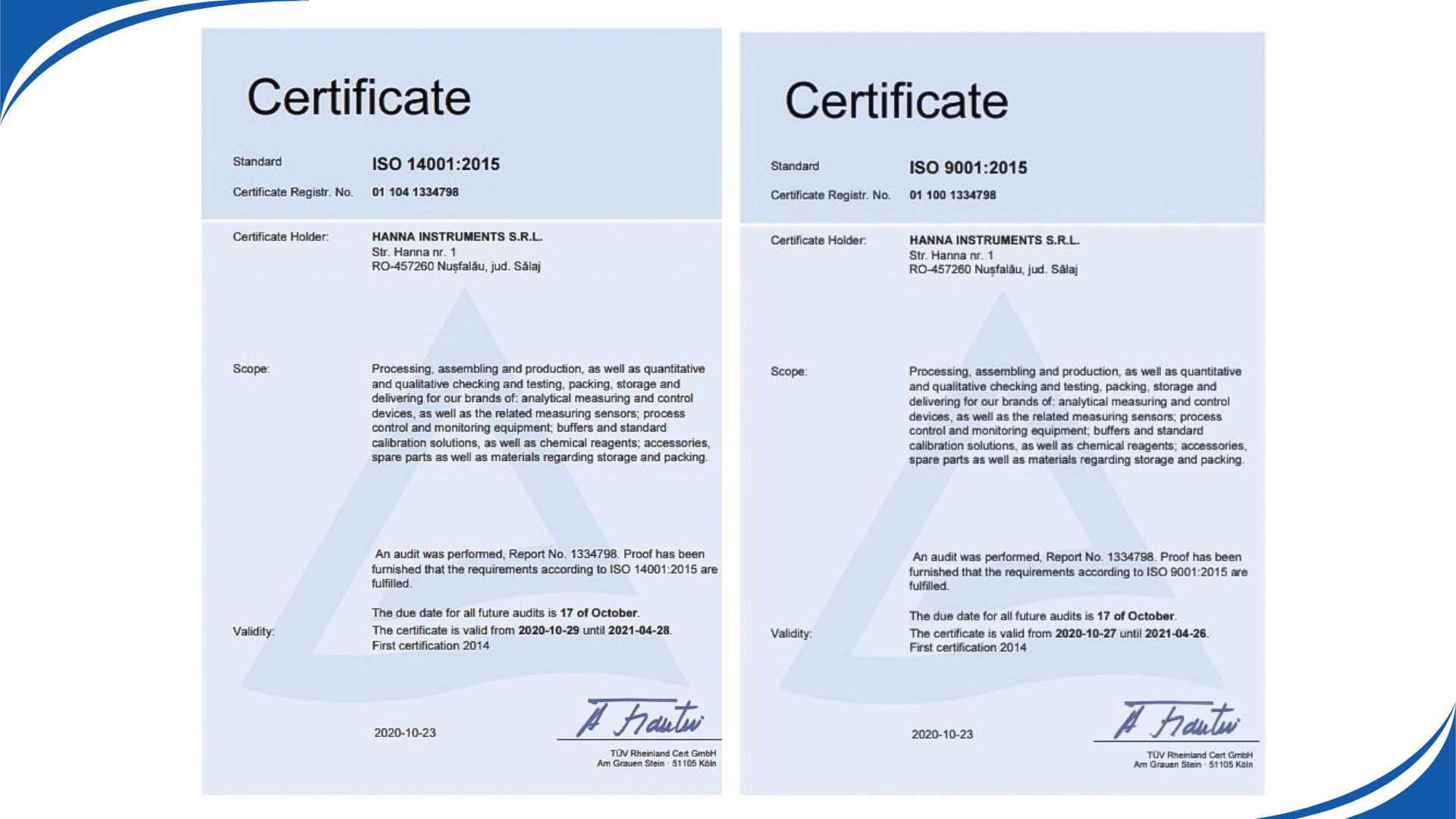 Hanna Instruments® là một tập đoàn chuyên thiết kế, sản xuất và phân phối các thiết bị đo đạc phân tích trong đa dạng lĩnh vực: Phòng thí nghiệm, Thực phẩm & Đồ uống, Thủy canh, Nuôi trồng thủy sản và Nước thải. Trong bốn thập kỷ qua, Hanna đã thiết lập cơ sở hạ tầng ấn tượng trên toàn thế giới bao gồm 4 cơ sở sản xuất, 3 trung tâm nghiên cứu & phát triển, 47 văn phòng hỗ trợ kỹ thuật và bán hàng chuyên dụng ở các quốc gia khác nhau.