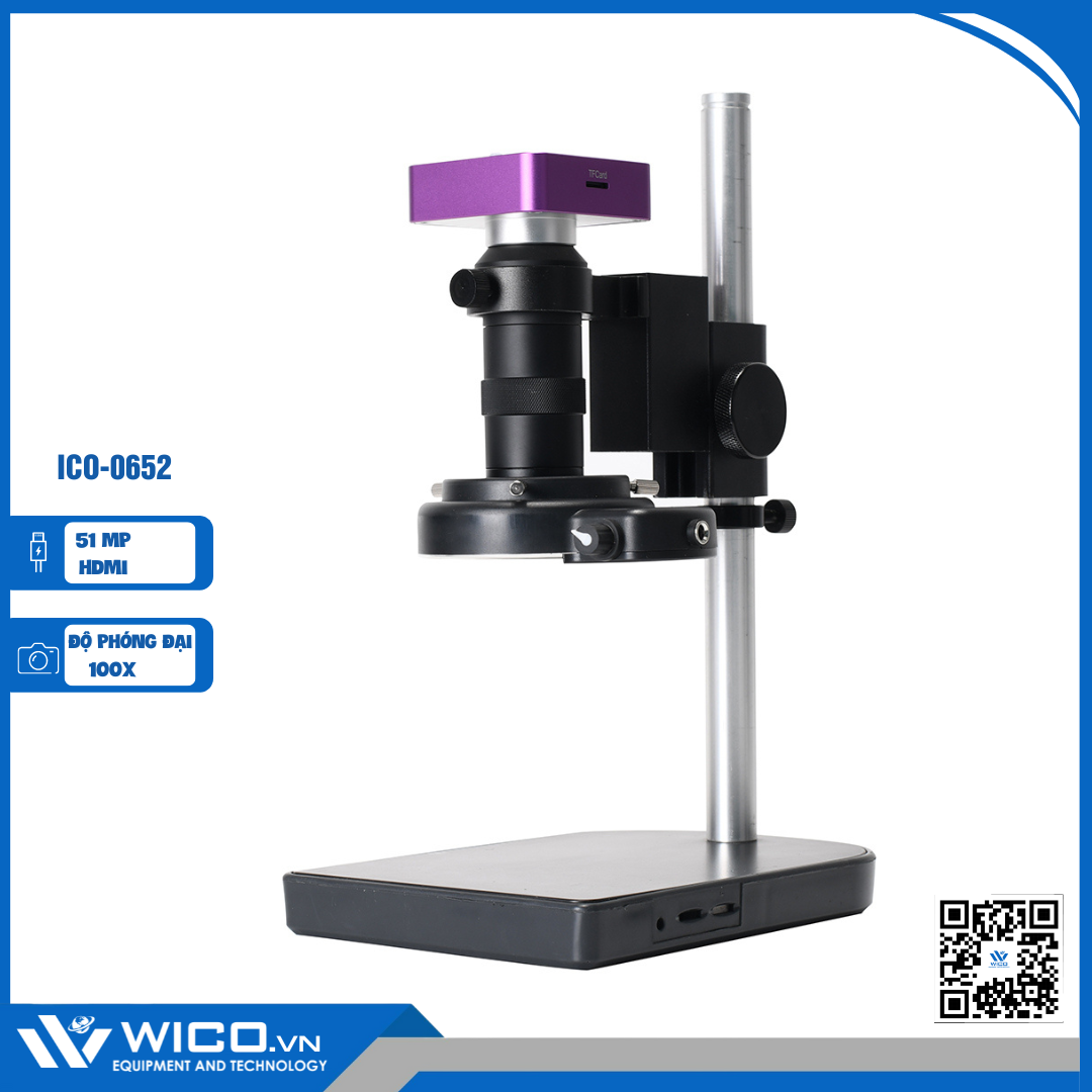 ICO-0652 là Kính hiển vi kỹ thuật số thương hiệu WICO. Kính có độ phân giải đạt tới 51MP, có cổng kết nối qua HDMI và USB; đồng thời, ống kính có khả năng zoom tới 130x với độ phóng đại dao động từ 0,12 - 2X (khoảng 8X - 130X trên màn hình) để phù hợp với nhu cầu sử dụng,...