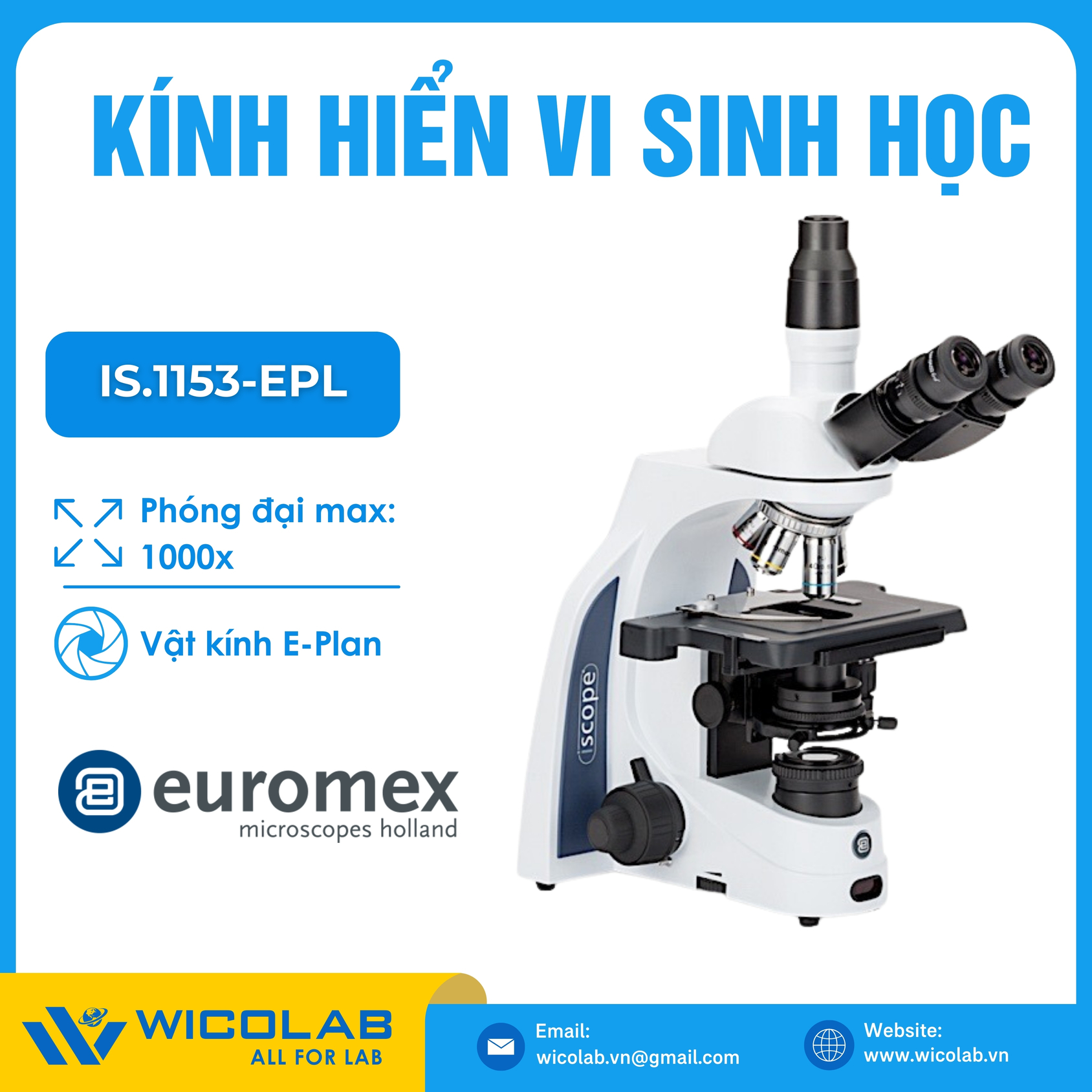 IS.1158-PLPHi ⭐ Kính hiển vi phản pha thuộc dòng kính iScope, độ phóng đại 1000 lần, được dùng phổ biến trong lĩnh vực giáo dục, nghiên cứu, thú y, khoa học sự sống. Sản phẩm do hãng Euromex- Hà lan sản xuất, được nhập khẩu và phân phối chính hãng bởi WICOLAB