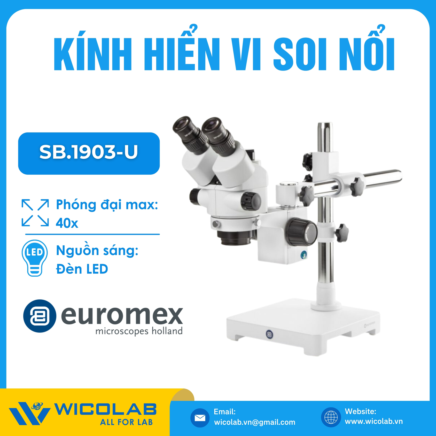 SB.3903-U ⭐ Kính hiển vi StereoBlue - kính hiển vi soi nổi do hãng Euromex- Hà lan sản xuất, được sử dụng rộng rãi trong các lĩnh vực : công nghiệp lắp ráp điện tử, kiểm tra dụng cụ thực phẩm, công nghệ sinh học, dược phẩm, thực phẩm...Sản phẩm được nhập khẩu và phân phối chính hãng bởi WICOLAB