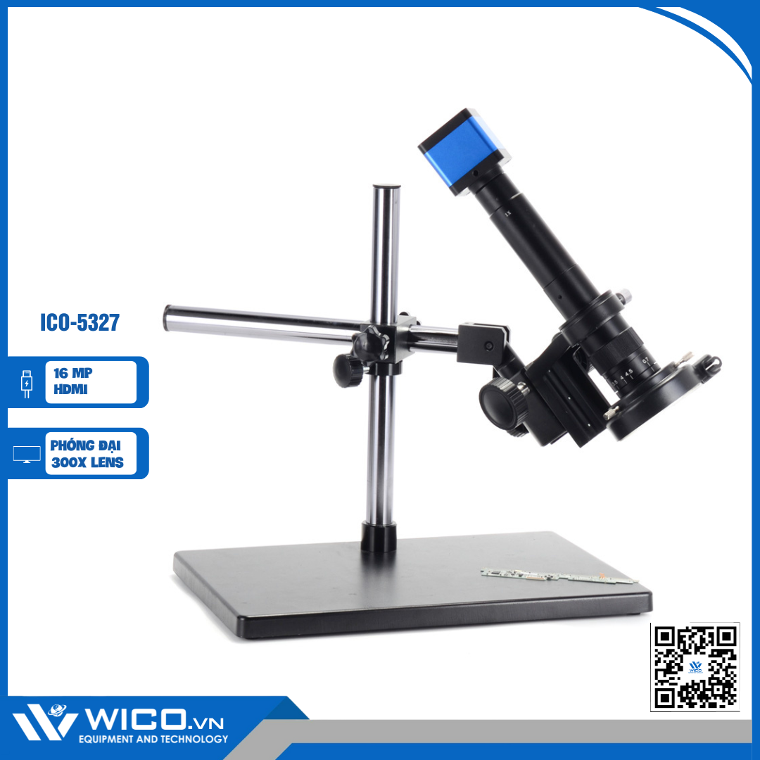 Kính hiển vi kỹ thuật số ICO-5327 với độ phân giải Camera đạt tới 16MP, có cổng kết nối qua HDMI và USB; đồng thời, ống kính có khả năng zoom tới 300X, gồm 144 đèn LED kèm chân đế chắc chắn, cùng nhiều đặc điểm nổi bật khác,...