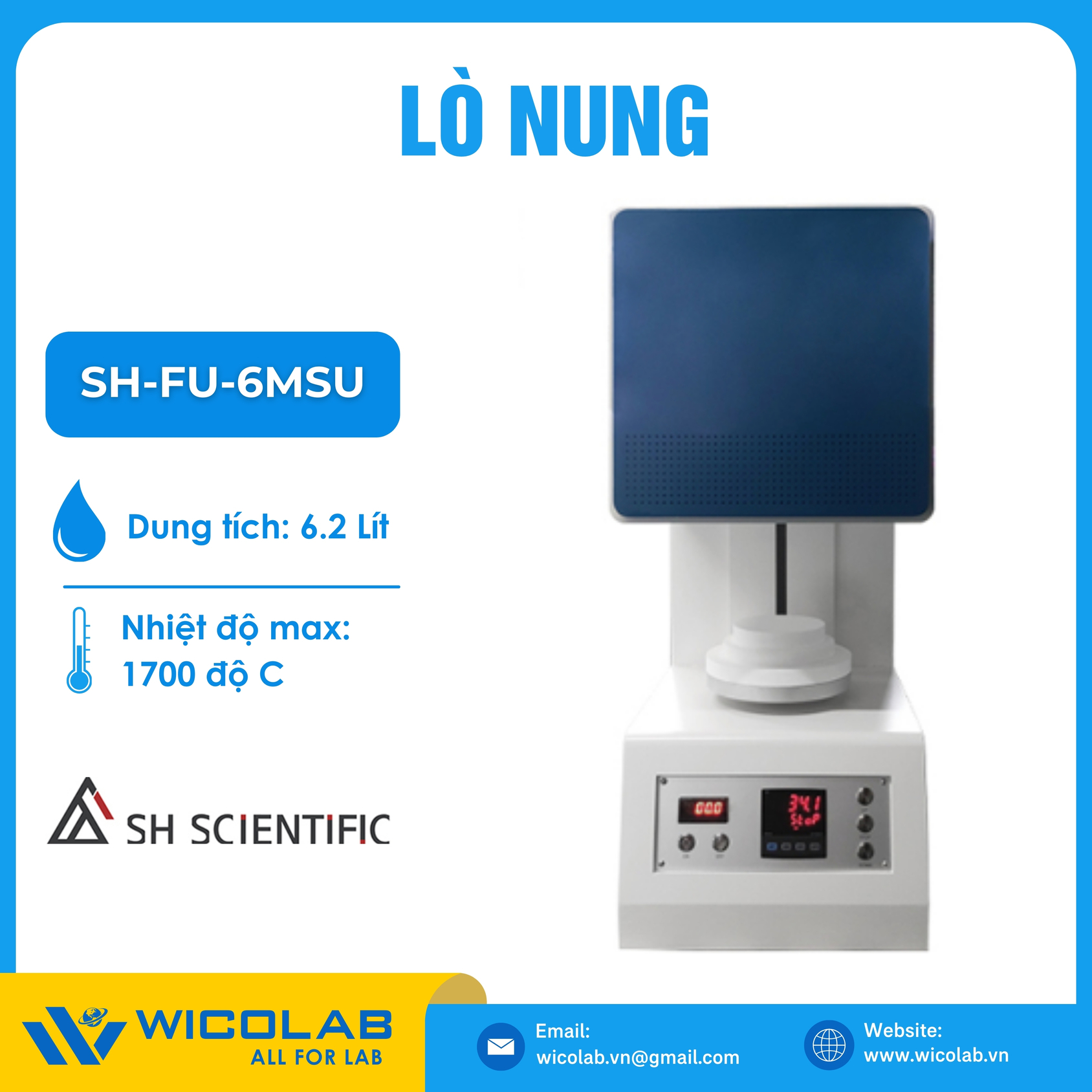 SH-FU-6MSU 🌟Lò nung thí nghiệm tối đa 1700 độ C với dung tích 6.2 lít. Sản phẩm do hãng SH Scientific Hàn Quốc thiết kế và chế tạo. Lò nung được thiết kế sử dụng cho các ứng dụng quy trình tro hóa, nung chảy, thử nghiệm kim loại, sử dụng trong phòng thí nghiệm chung. Được nhập khẩu và phân phối chính hãng bởi WICOLAB. Bảo hành 12 tháng. Hỗ trợ giao hàng toàn quốc.