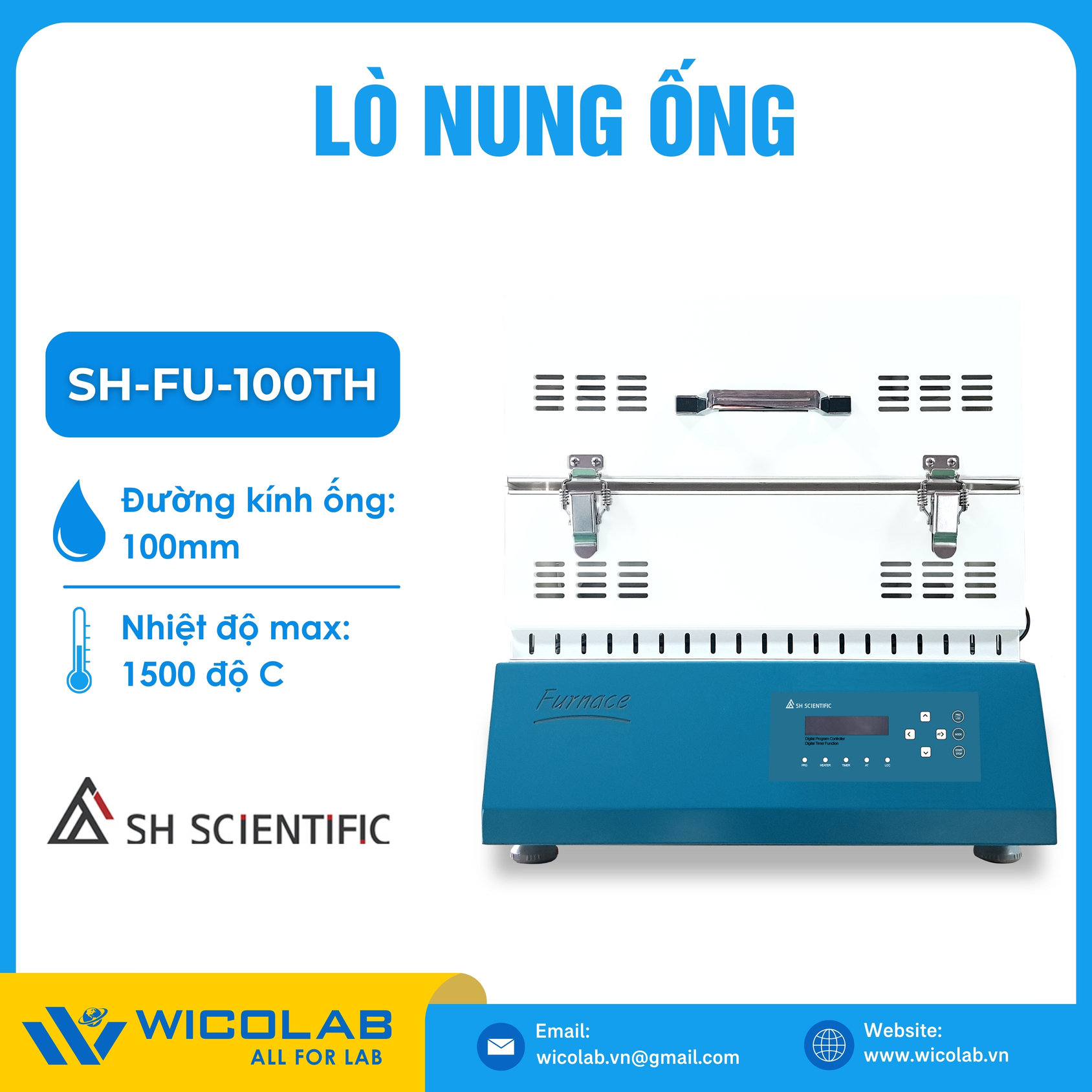 SH-FU-100TH 🌟 Lò nung ống 300mm thí nghiệm có nhiệt tối đa 1500 độ C với đường kính ống là 100mm. Lò nung được thiết kế và chế tạo bởi hãng SH Scientific - Hàn Quốc. Lò độ bền cao nhờ bộ phận gia nhiệt SIC với vỏ kép và nhiệt độ bề mặt thấp. Sản phẩm được nhập khẩu và phân phối chính hãng bởi WICOLAB. Bảo hành lên tới 12 tháng. Hỗ trợ giao hàng toàn quốc.