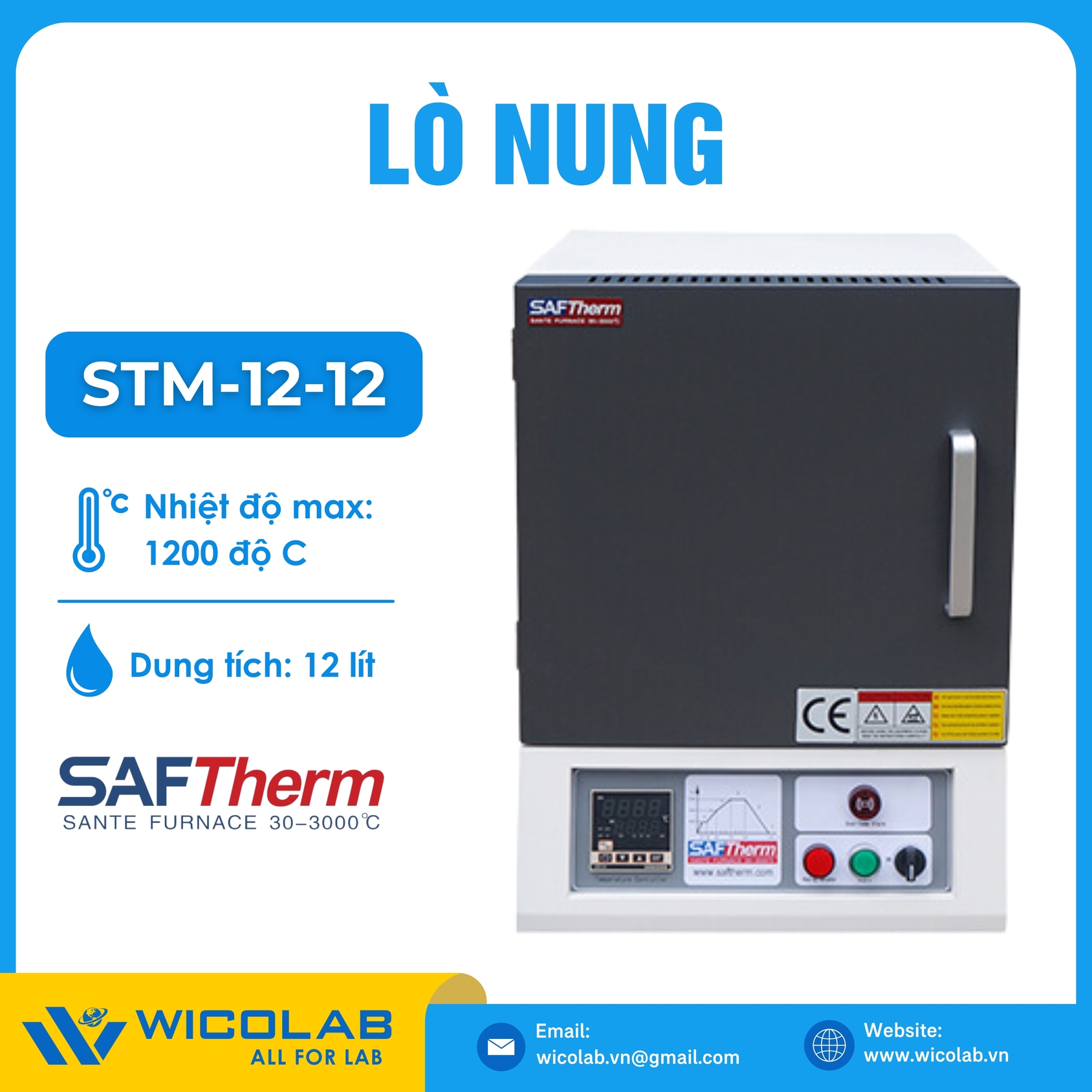 STM-12-12 ⭐ Lò nung kiểu buồng gia nhiệt bằng nhiệt điện trở với dung tích 12 lít cùng nhiệt độ tối đa lên tới 1200 độ C. Sản phẩm được sản xuất bởi Saftherm với hơn 22 năm kinh nghiệm thiết kế chế tạo Lò nung cũng như các Thiết bị gia nhiệt. Được nhập khẩu nguyên chiếc và phân phối chính hãng bởi WICOLAB