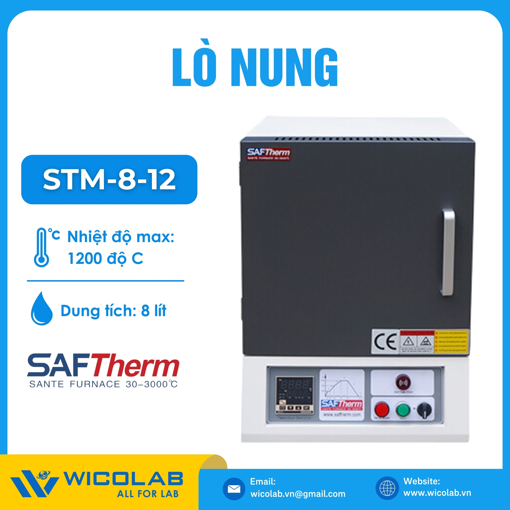 STM-8-12 ⭐ Lò nung kiểu buồng gia nhiệt bằng nhiệt điện trở với dung tích 08 lít cùng nhiệt độ tối đa lên tới 1200 độ C. Sản phẩm được sản xuất bởi Saftherm với hơn 22 năm kinh nghiệm thiết kế chế tạo Lò nung cũng như các Thiết bị gia nhiệt. Được nhập khẩu nguyên chiếc và phân phối chính hãng bởi WICOLAB