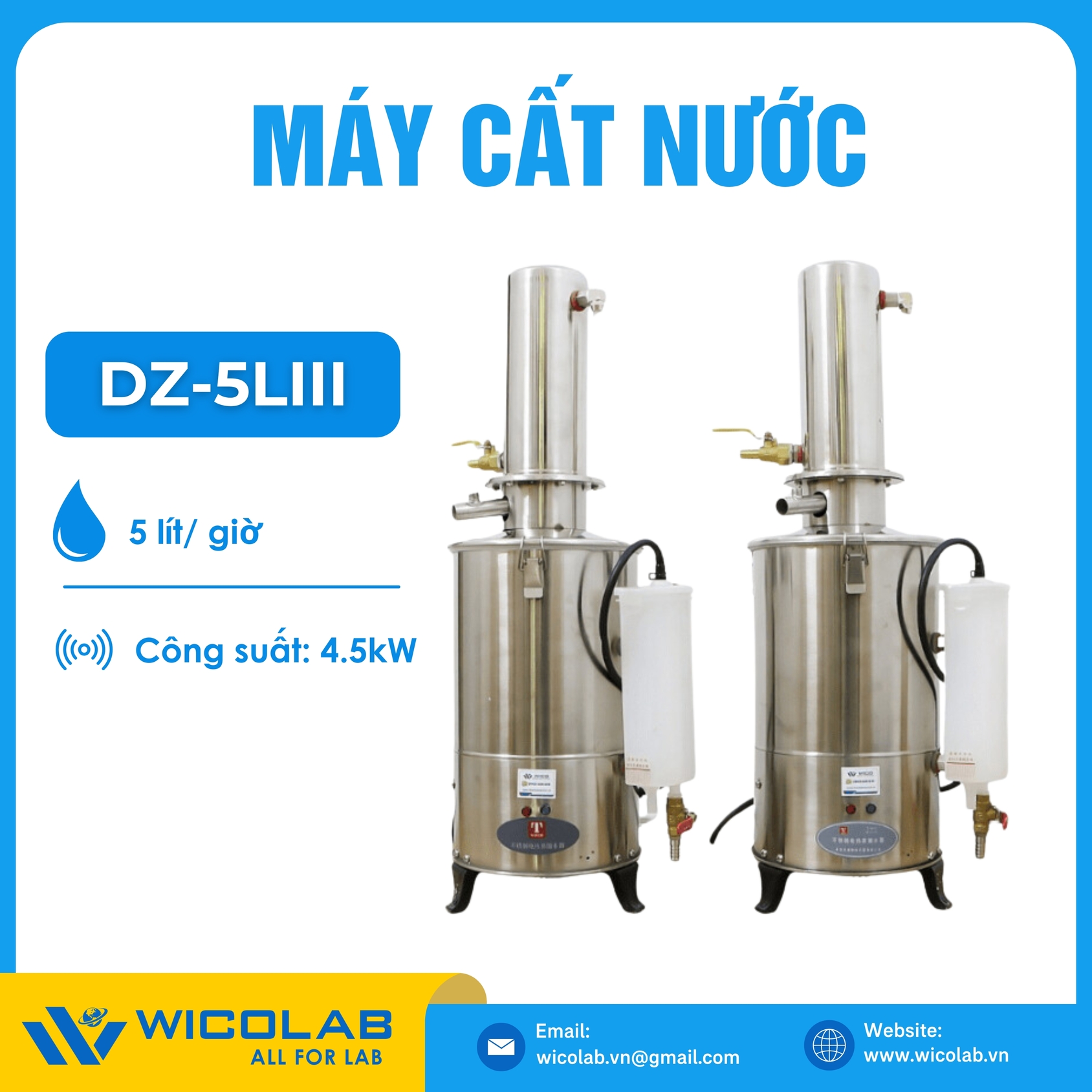 DZ-5LIII 🌟Dòng máy cất nước 1 lần hoàn toàn tự động do hãng Taisite sản xuất. Máy được chế tạo hoàn toàn bằng Inox - Công suất cất 5 lít/ giờ do hãng Taisite - Trung Quốc thiết kế và chế tạo. Chức năng điều khiển tự động mức nước, tự động ngắt khi xảy ra sự cố như mất nước, thiếu nước,….máy tự hoạt động trở lại sau khi có nước. Được nhập khẩu và phân phối chính hãng bởi WICOLAB. Bảo hành 12 tháng.