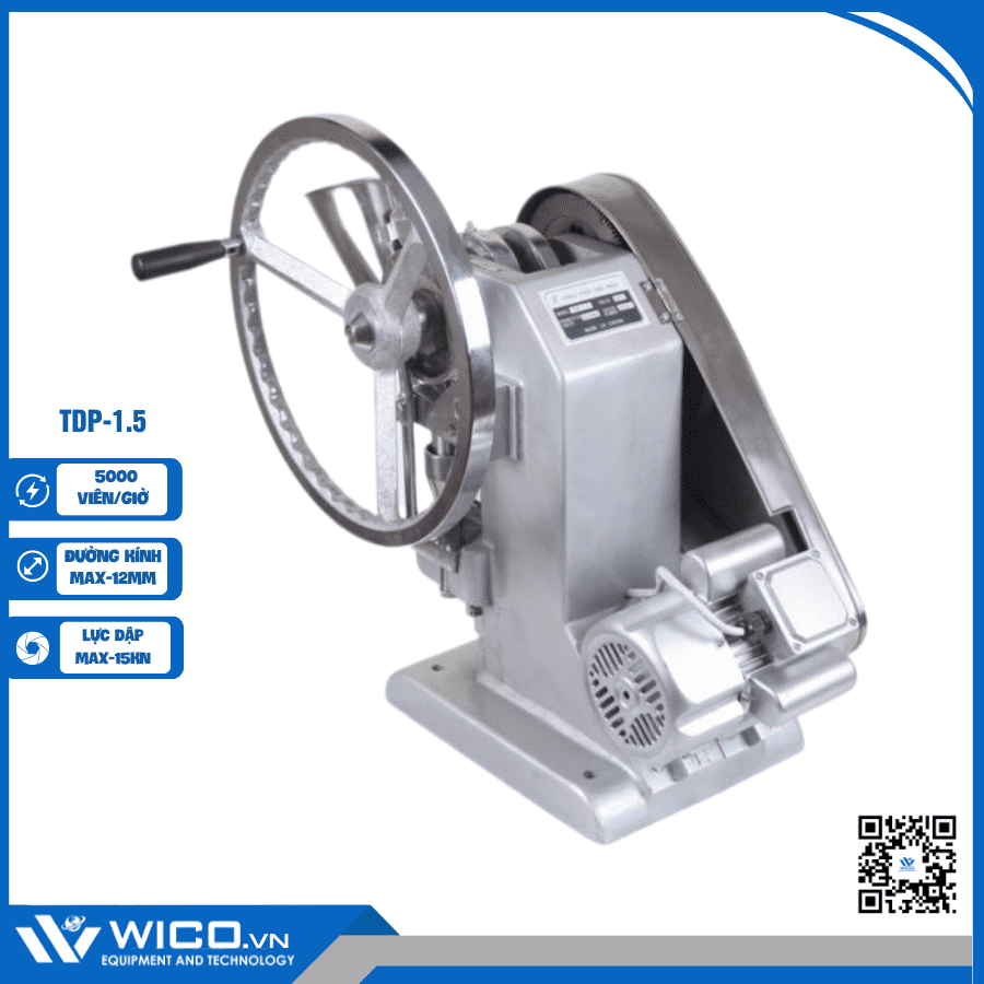 TDP-1.5 là Máy dập viên 1 chày với công suất 5000 viên/ giờ lực dập tốt đa lên tới 15kN cho phép dập viên đường kính tối đa 12mm. Sản phẩm do hãng Tianfeng Trung Quốc thiết kế chế tạo. Được nhập khẩu và phân phối chính hãng bởi Wico Việt Nam. Bảo hành 12 tháng