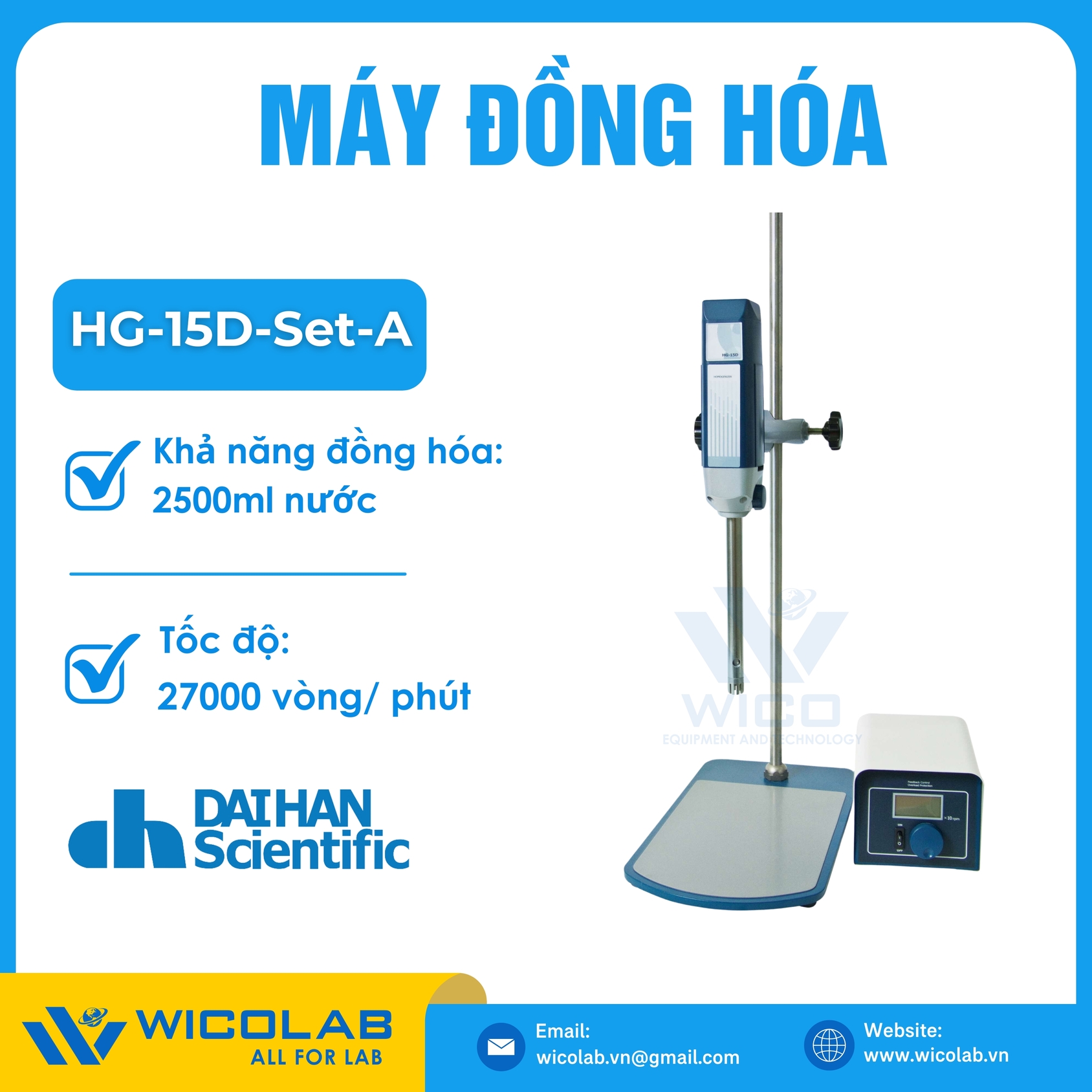 HG-15D-Set-A 🌟 Máy Đồng Hoá Mẫu với 100% sản phẩm chính hãng Daihan - Hàn Quốc. Máy có tốc độ cao, chất lượng tốt, tiếng ồn thấp: tốc độ max 27,000 vòng/phút (không tải). Sản phẩm được nhập khẩu và phân phối bởi WICOLAB. Bảo hành lên tới 12 tháng. Hỗ trợ giao hàng toàn quốc.