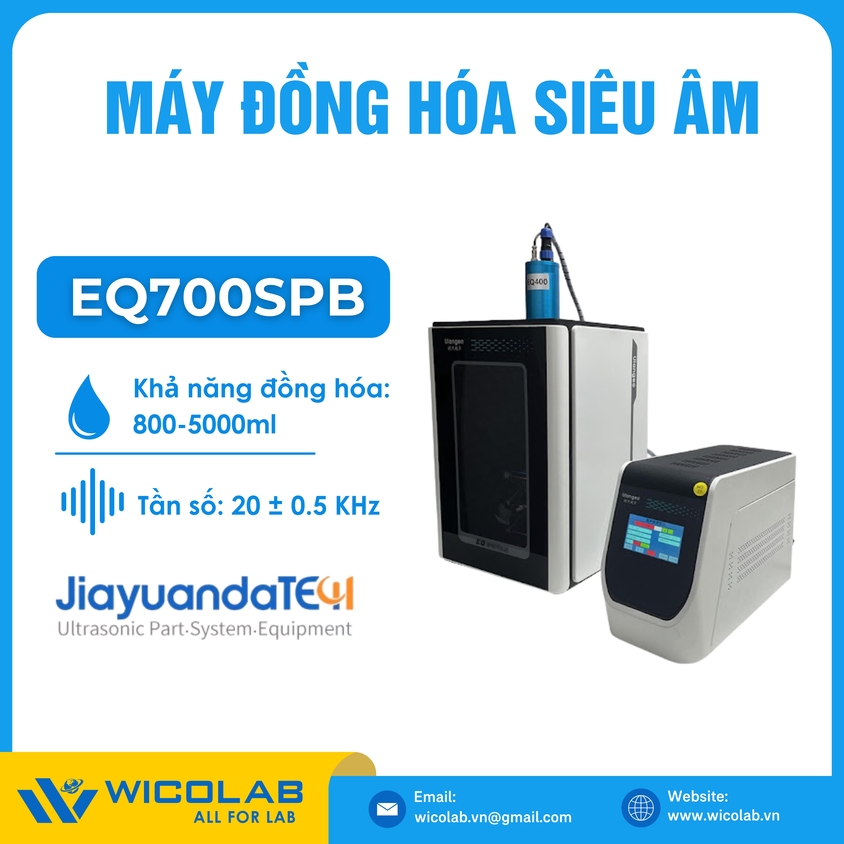 EQ700SPB ⭐ máy đồng hóa siêu âm với khả năng đồng hóa tối đa 5000ml. Máy được trang bị kèm thêm 1 hộp tiêu âm giúp giảm tiếng ồn trong quá trình làm việc. Sản phẩm được thiết kế, chế tạo bởi hãng Jiayuanda – Trung Quốc. Được nhập khẩu và phân phối chính hãng bởi Wicolab