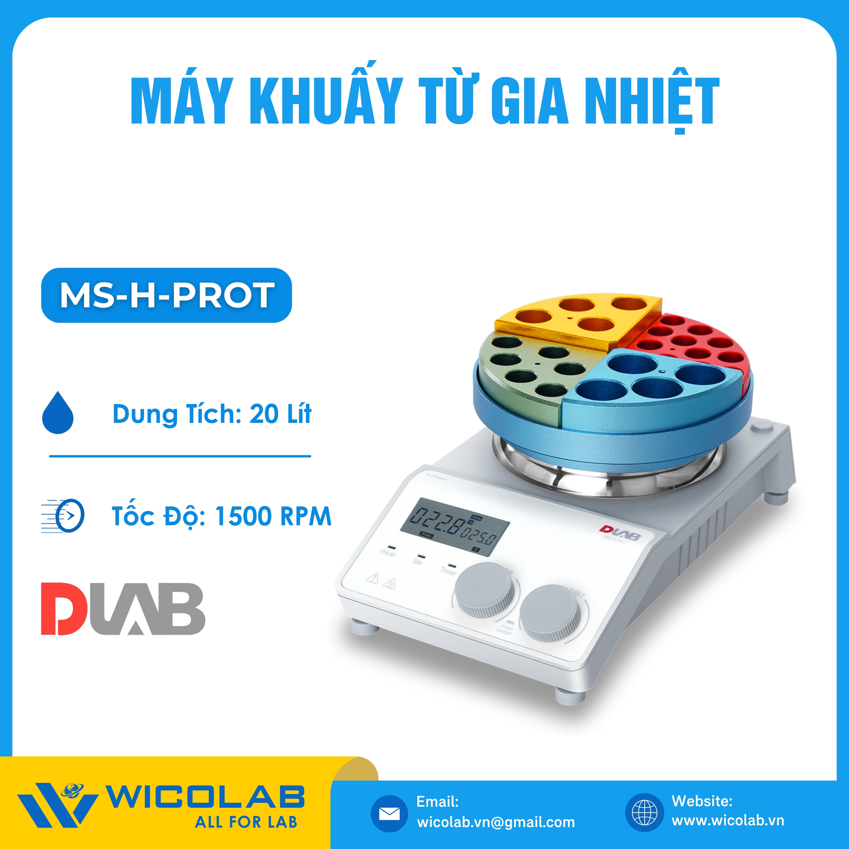 MS-H-PROT🌟Máy Khuấy Từ Gia Nhiệt do hãng Dlab - Trung Quốc thiết kế và chế tạo. Máy được trang bị dộng cơ DC không chổi than, không cần bảo trì, không phát sinh tia lửa điện. Khả năng gia nhiệt nhanh độ đồng đều cao. Nhiệt độ tối đa lên 340 độ C, Kiểm soát tốc độ khuấy kỹ thuật số với tốc độ 1500 vòng/ phút. Sản phẩm được nhập khẩu và phân phối chính hãng bởi WICOLAB