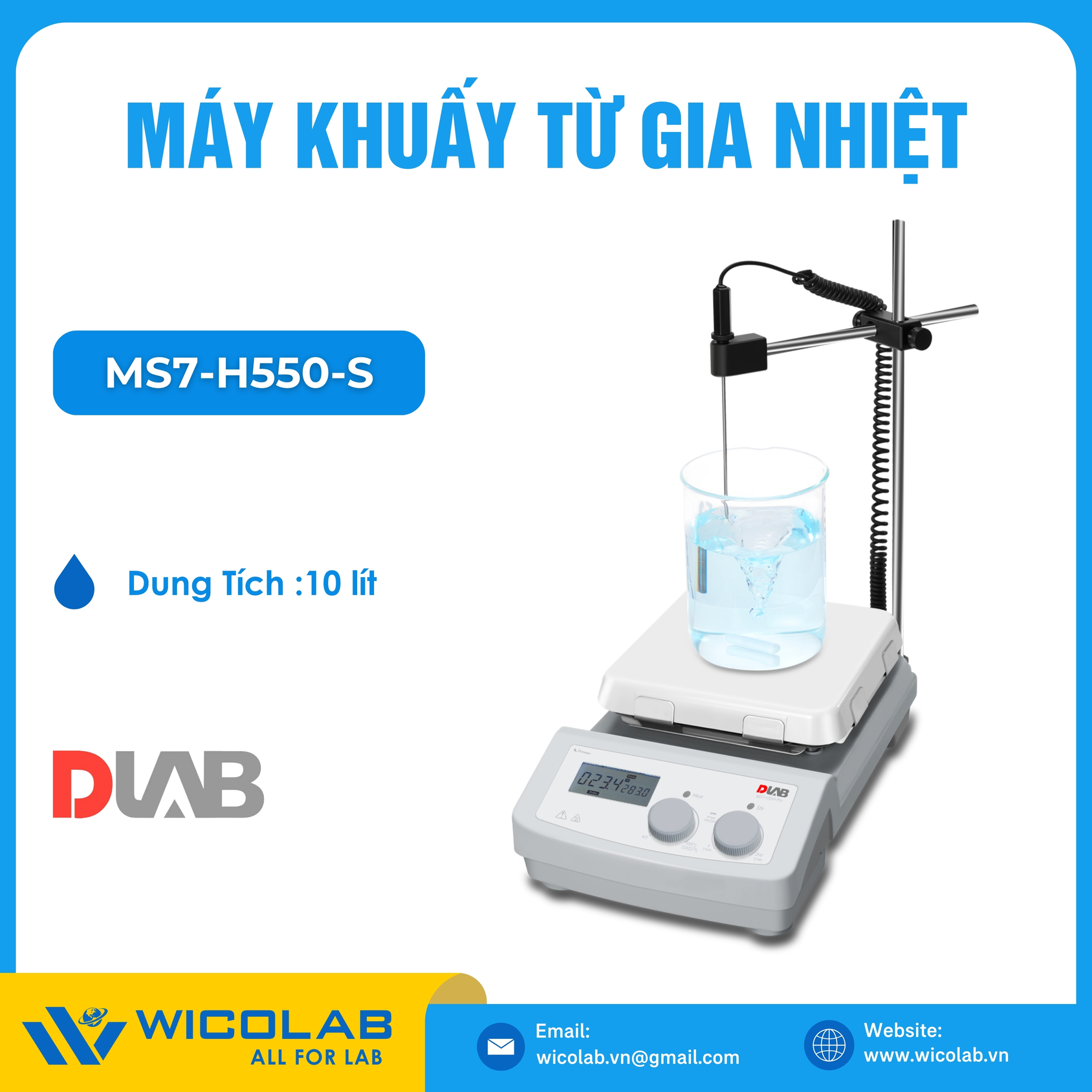 MS7-H550-S 🌟Máy khuấy từ gia nhiệt nhiệt độ cao do hãng Dlab - Trung Quốc thiết kế và chế tạo. Kết hợp bề mặt gia nhiệt bằng gốm thủy tinh, động cơ DC không chổi than và cảm biến nhiệt độ bên ngoài, nhiệt độ làm việc được tối ưu hóa lên tới 550 độ C. Có thể kiểm soát nhiệt độ trong dung dịch thông qua cảm biến nhiệt độ (PT 1000) với độ chính xác ± 0.2 độ C. Nhập khẩu và phân phối chính hãng bởi Wico Việt Nam