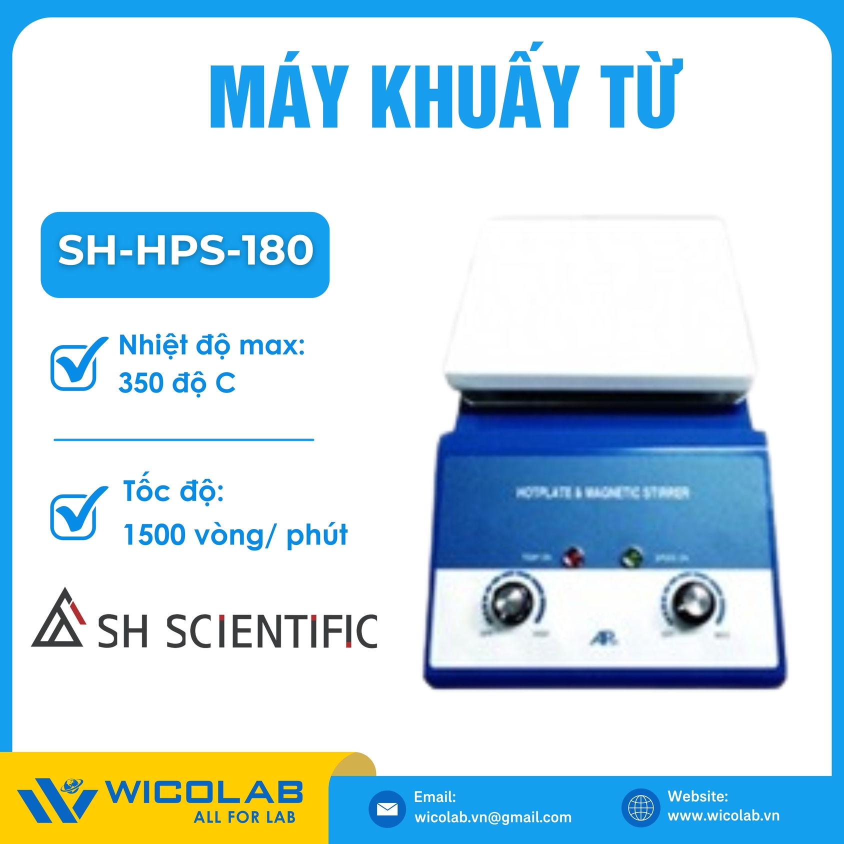 ✅ SH-HPS-180 / SH-HPS-180-D2 là Máy Khuấy Từ chính hãng SH Scientific Hàn Quốc. Sản phẩm được nhập khẩu và phân phối chính hãng bởi WICOLAB