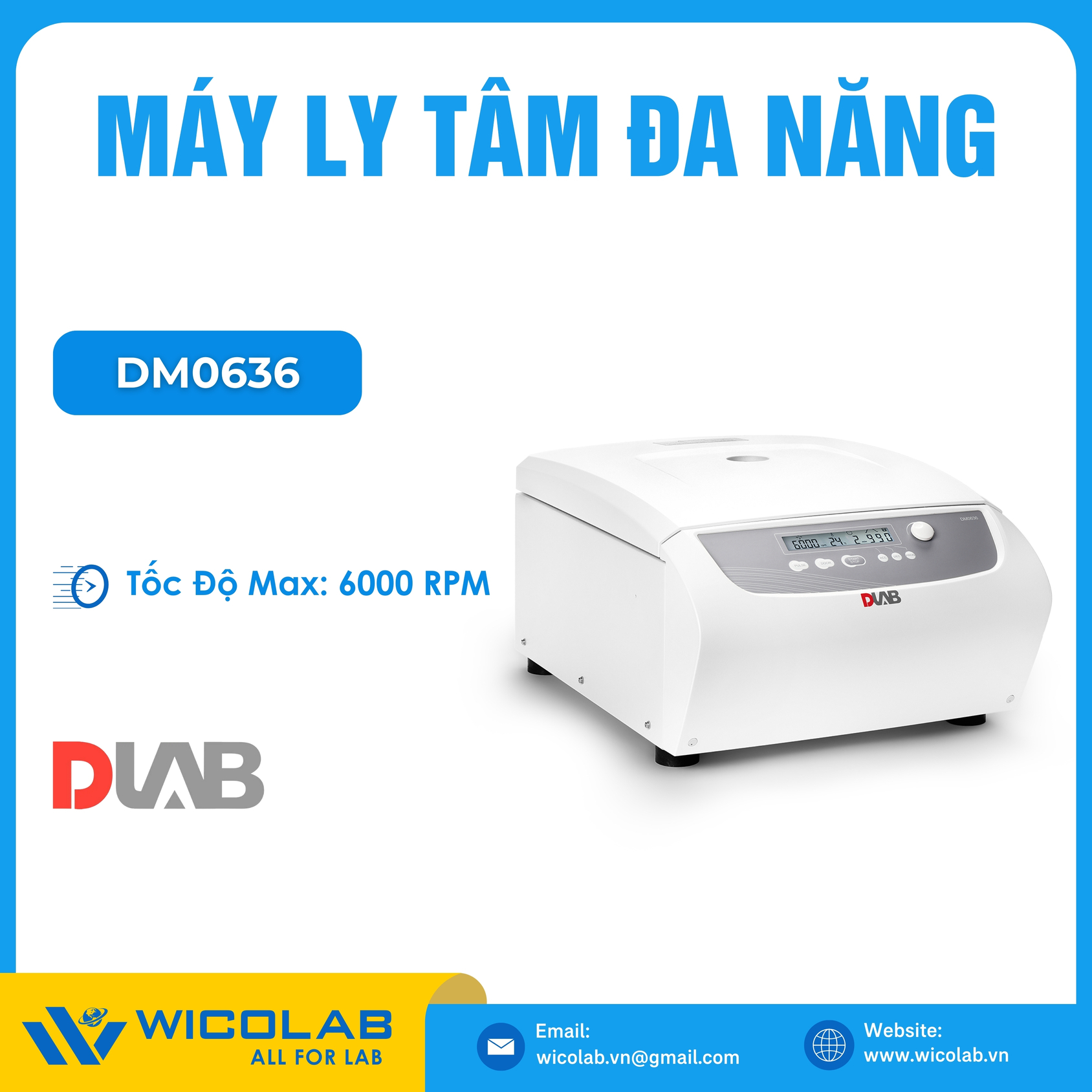 D0636 🌟Máy Ly Tâm Đa Năng do hãng Dlab - Trung Quốc thiết kế và chế tạo. Sử dụng động cơ không chổi than tốc độ tối đa 6,000 vòng/ phút. Có thể sử dụng với các rotor văng và rotor góc cho ống: 100ml, 50ml, 15ml, 10ml, 5ml, 1.5/2ml, Micro Plate. Nhập khẩu và phân phối chính hãng bởi WICOLAB. Bảo hành lên tới 12 tháng.