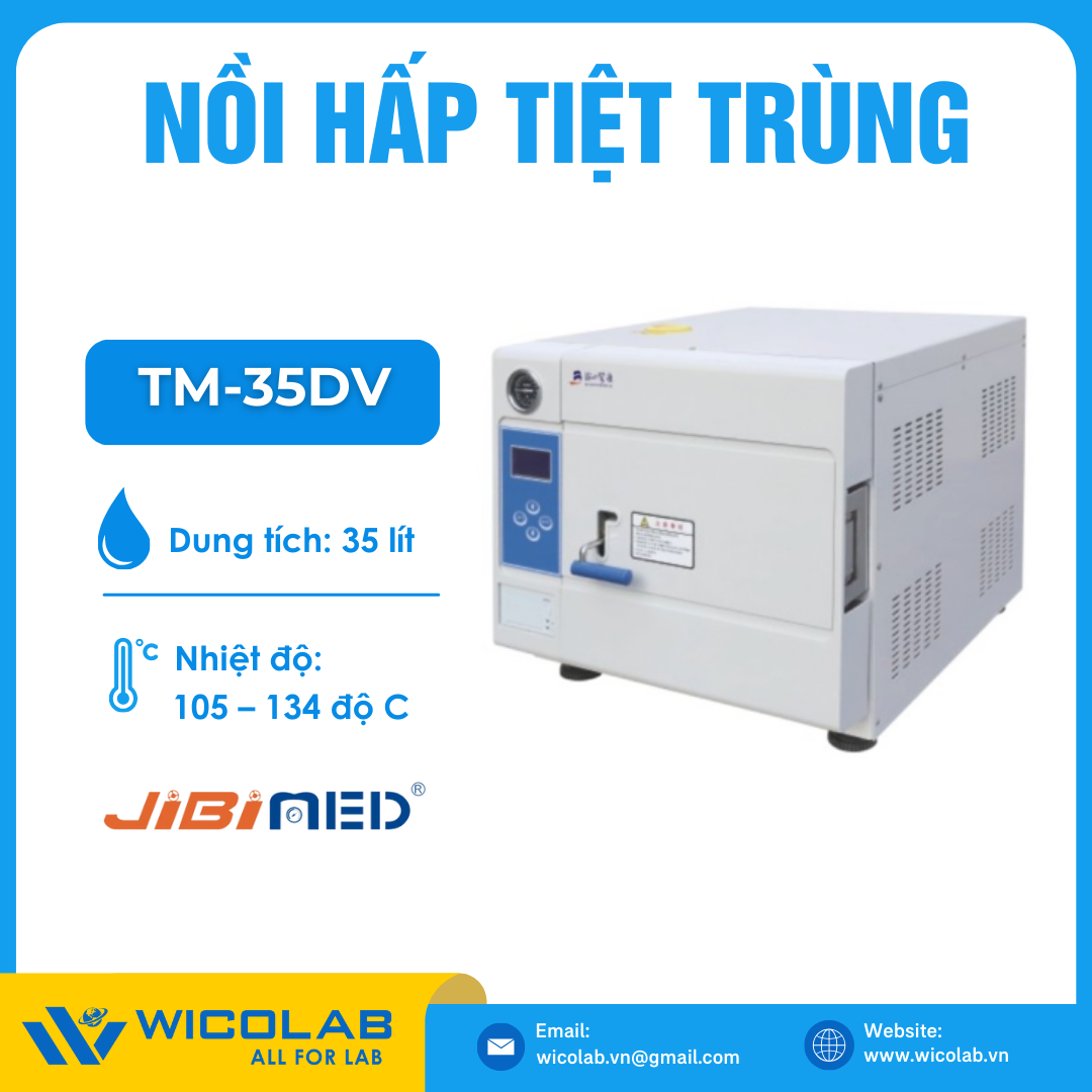 TM-35DV ⭐ Nồi hấp để bàn sấy chân không tự động do hãng Jibimed - Trung Quốc thiết kế chế tạo. Cho phép điều chỉnh thời gian: 0~99 phút. Nồi đạt tiêu chuẩn loại B với 3 lần hút chân không và sấy khô chân không hoàn toàn tự động. Sản phẩm được nhập khẩu và phân phối chính hãng bởi Wicolab. Cam kết 100% sản phẩm chính hãng. Bảo hành 12 tháng