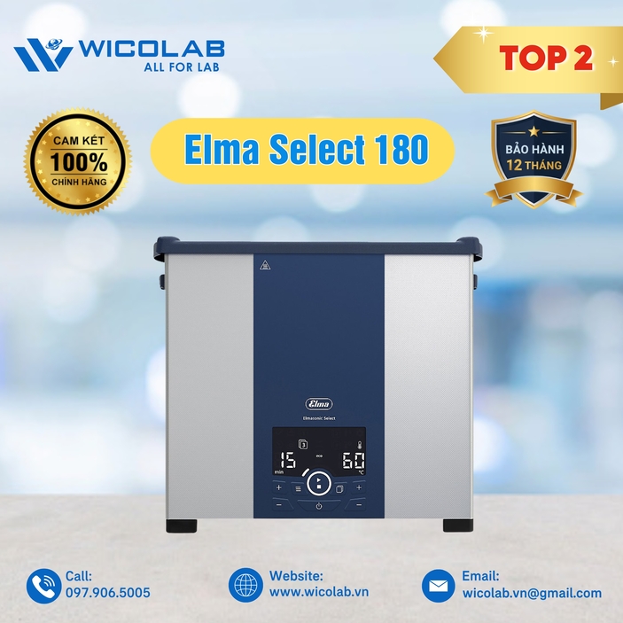 Thiết bị hoạt động ở tần số 37 kHz, cho hiệu quả làm sạch sâu, ổn định và an toàn cho vật liệu nhạy cảm. Vỏ máy và khay rửa được làm từ Inox chống ăn mòn, dễ vệ sinh và bền bỉ theo thời gian. Elma Select 180 tích hợp 5 chế độ làm sạch chuyên biệt (Eco, Sweep, Pulse, Dynamic, Degas) phù hợp với từng loại vết bẩn và yêu cầu sử dụng khác nhau. Dù có giá cao hơn các dòng phổ thông, Elma Select 180 vẫn được đông đảo khách hàng tại Wicolab tin dùng nhờ chất lượng vượt trội và tuổi thọ thiết bị lâu dài.