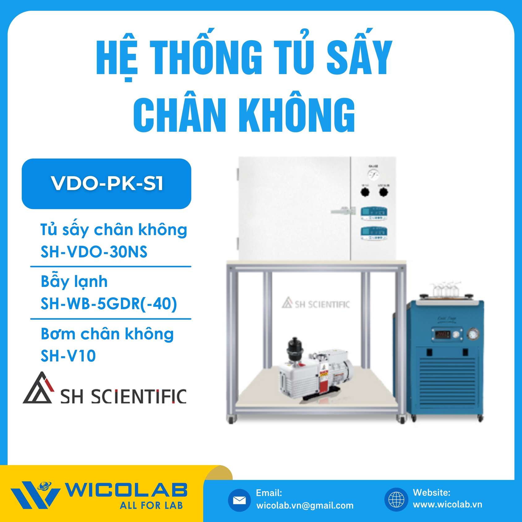Hệ Thống Tủ sấy chân không SH Scientific Hàn Quốc VDO-PK-S1🌟 Cung cấp trọn bộ gồm Tủ sấy 27 lít + Bơm Chân Không V20 + Bẫy lạnh - Cold Trap SH-WB-5GDR(-40). Nhiệt độ tối đa 450 độ C. Sản phẩm được nhập khẩu và phân phối chính hãng bởi WICOLAB. Bảo hành lên tới 12 tháng. Hỗ trợ giao hàng toàn quốc.