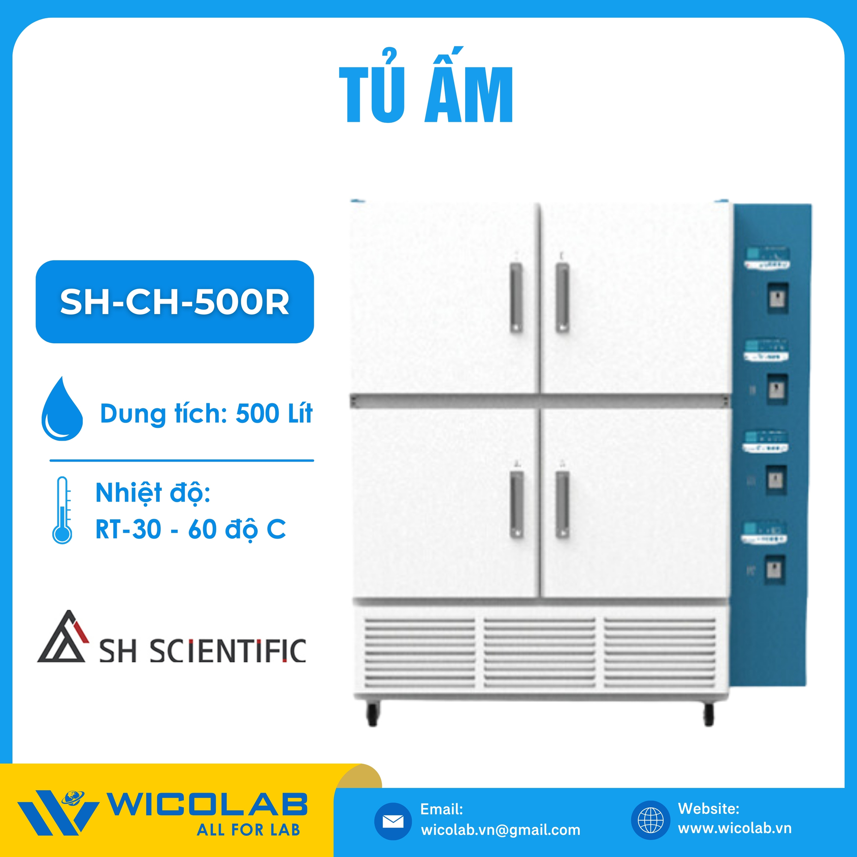 SH-CH-500R 🌟 Tủ Ấm do hãng SH Scientific Hàn Quốc thiết kế và chế tạo với nhiều ưu điểm nổi bật. Dải nhiệt độ từ: RT+5 đến 70 độ C (G) và RT-30 đến 60 độ (thấp nhất -10 độ - model R). Thiết kế 4 buồng 125 lít độc lập - Bộ điều khiển PID hiện số. Sản phẩm chính hãng được nhập khẩu và phân phối chính hãng bởi WICOLAB. Bảo hành lên tới 12 tháng. Hỗ trợ giao hàng trên toàn quốc