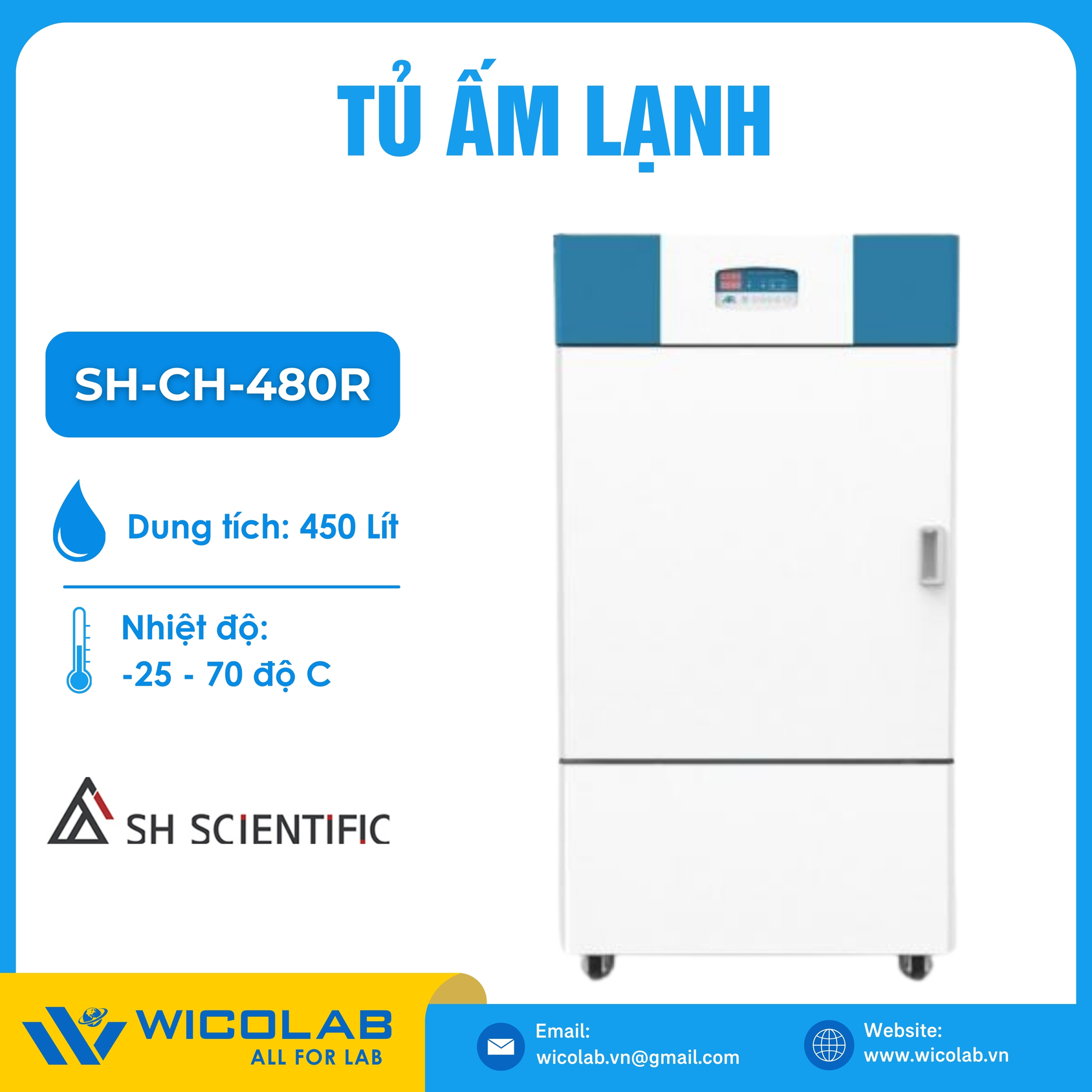 SH-CH-480R 🌟 Tủ Ấm Lạnh - Tủ BOD do hãng SH Scientific Hàn Quốc thiết kế và chế tạo với nhiều ưu điểm nổi bật. Dải nhiệt độ từ: (Nhiệt độ phòng -25) đến 70 độ C. Bộ điều khiển PID hiện số. Dung tích 480 lít. Sản phẩm được nhập khẩu và phân phối chính hãng bởi WICOLAB. Bảo hành lên tới 12 tháng. Hỗ trợ giao hàng trên toàn quốc