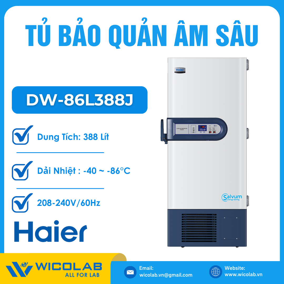 DW-86L388J ⭐Tủ lạnh âm sâu từ -40 đến -86 độ C kiểu đứng, 388 Lít do hãng Haier Biomedical sản xuất. Phù hợp cho việc bảo quản trong thời gian dài với các sản phẩm sinh học như các loại virut, vi trùng, hồng cầu, bạch cầu… Sản phẩm được nhập khẩu và phân phối chính hãng bởi Wicolab. Bảo hành lên tới 12 tháng. Hỗ trợ giao hàng toàn quốc.
