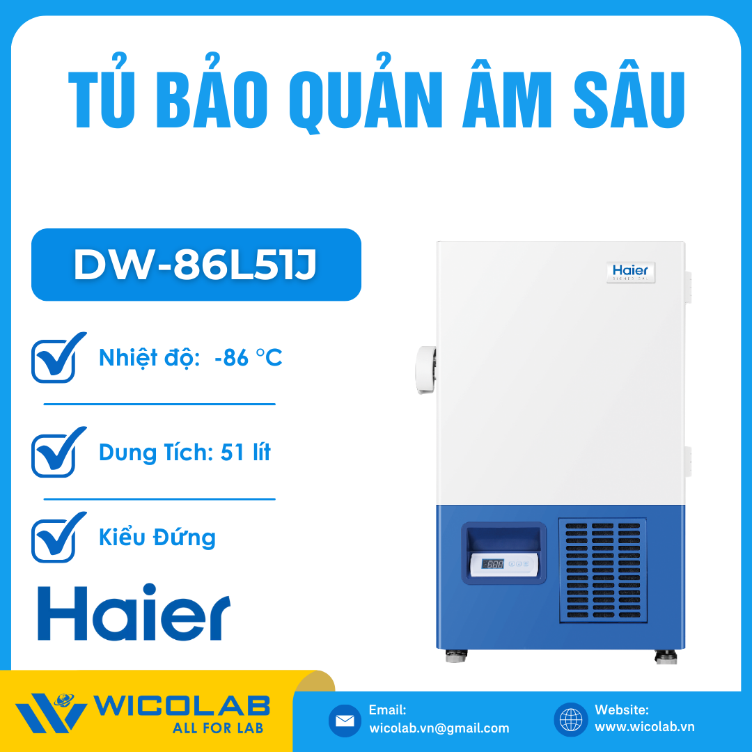 DW-86L51J ⭐ Tủ lạnh âm sâu từ -40 đến -86 độ C, dung tích 51 lít, với thiết kế kiểu đứng do hãng Haier Biomedical sản xuất. Phù hợp cho việc bảo quản trong thời gian dài với các sản phẩm sinh học như các loại virut, vi trùng, hồng cầu, bạch cầu… Sản phẩm được phân phối chính hãng bởi Wicolab. Bảo hành lên tới 12 tháng. Hỗ trợ giao hàng toàn quốc.