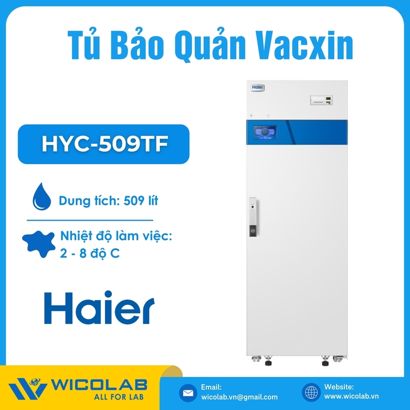 HYC-509TF🌟Tủ bảo quản Vacxin - Dược phẩm chuyên dụng với dung tích 509 lít và trang bị cửa thép kín hoàn toàn. Sản phẩm được thiết kế và chế tạo bởi hãng Haier BioMedical - Trung Quốc. Được phân phối chính hãng bởi Wicolab. Bảo hành 12 tháng, hỗ trợ giao hàng toàn quốc
