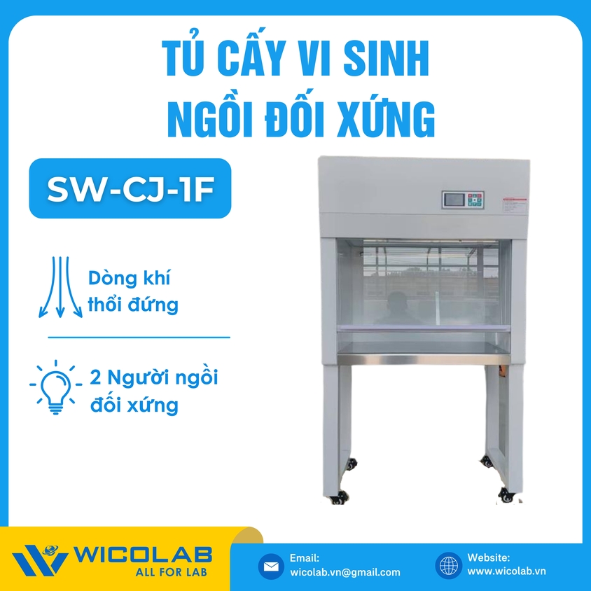 SW-CJ-1F ⭐Tủ cấy vi sinh thổi đứng với thiết kế 2 mặt thao tác, mỗi bên dành cho 1 người (ngồi đối diện nhau), với kích thước chiều dài buồng làm việc 870mm . Sản phẩm thuộc thương hiệu WICO, được nhập khẩu và phân phối chính hãng bởi Wicolab. Bảo hành 12 tháng, hỗ trợ giao hàng toàn quốc.