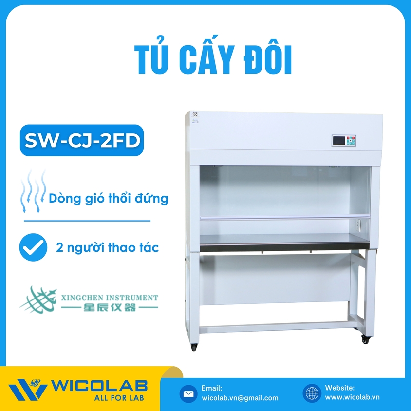 SW-CJ-2FD 🌟 Tủ cấy vi sinh 2 người thao tác chân đế có thể tháo rời, kiểu dòng khí thổi đứng, sử dụng màng học HEPA , buồng làm việc bằng thép không gỉ độ bền cao. Được nhập khẩu và phân phối chính hãng bởi Wicolab