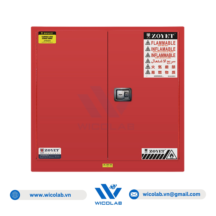ZYC0030R ⭐ Tủ đựng hóa chất an toàn chống cháy 2 cửa dung tích 114 lít (30 Gal), phù hợp cho các loại mẫu có điểm cháy trên 37,8 độ C. Sản phẩm được sản xuất bởi hãng Zoyet – Trung Quốc. Được nhập khẩu và phân phối chính hãng bởi Wicolab. Bảo hành 12 tháng – Giao hàng toàn quốc