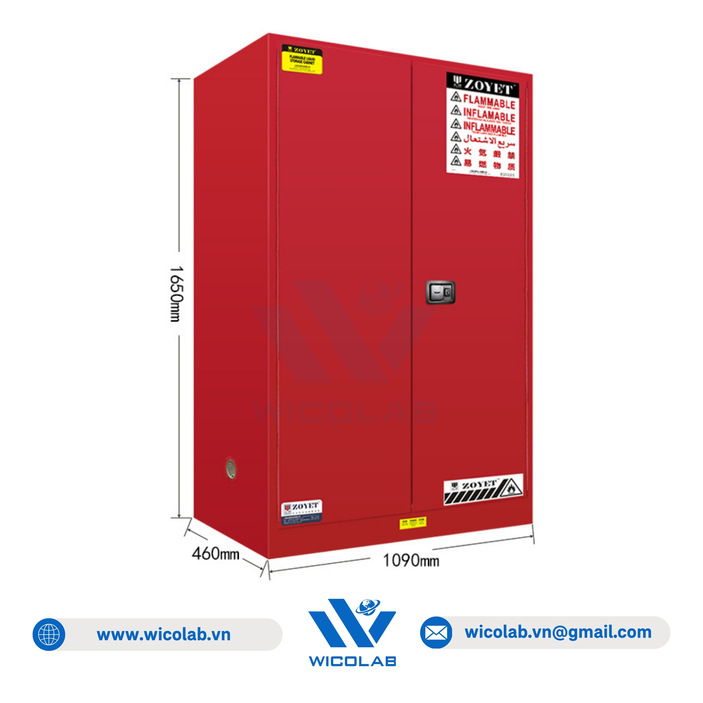 ZYC0045R ⭐ Tủ đựng hóa chất an toàn chống cháy 2 cửa dung tích 170 lít (45 Gal), phù hợp cho các loại mẫu có điểm cháy trên 37,8 độ C. Sản phẩm được sản xuất bởi hãng Zoyet – Trung Quốc. Được nhập khẩu và phân phối chính hãng bởi Wicolab. Bảo hành 12 tháng – Giao hàng toàn quốc