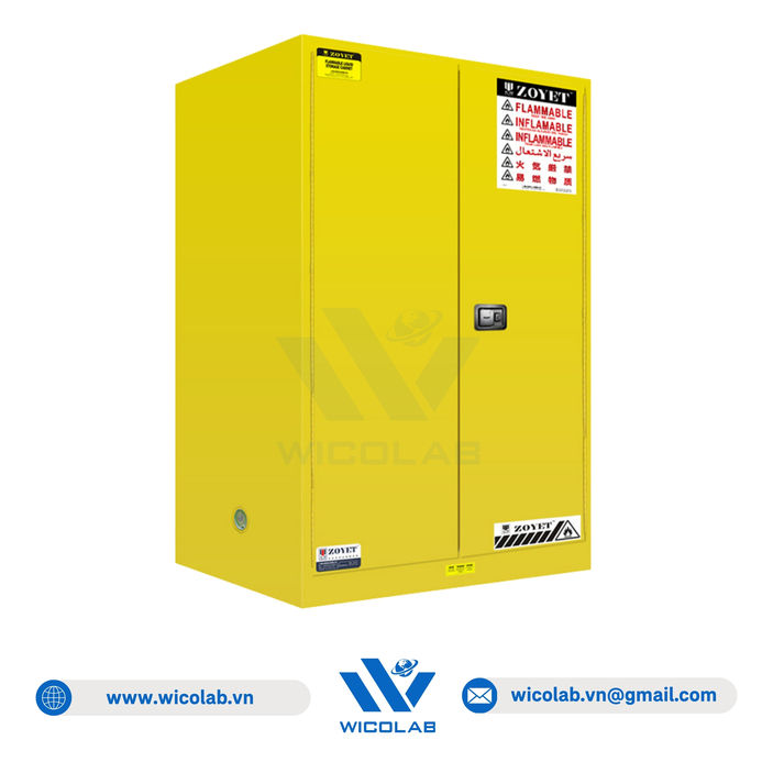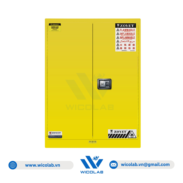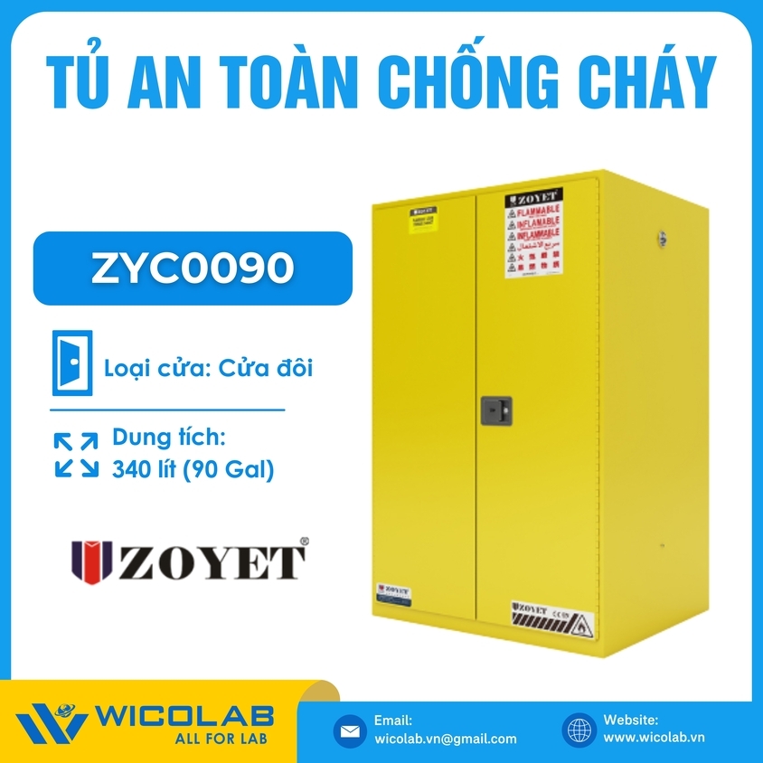 ZYC0090 ⭐ Tủ đựng hóa chất an toàn chống cháy 2 cửa dung tích 340 lít (90 Gal). Sản phẩm được sản xuất bởi hãng Zoyet – Trung Quốc. Được nhập khẩu và phân phối chính hãng bởi Wicolab. Bảo hành 12 tháng – Giao hàng toàn quốc
